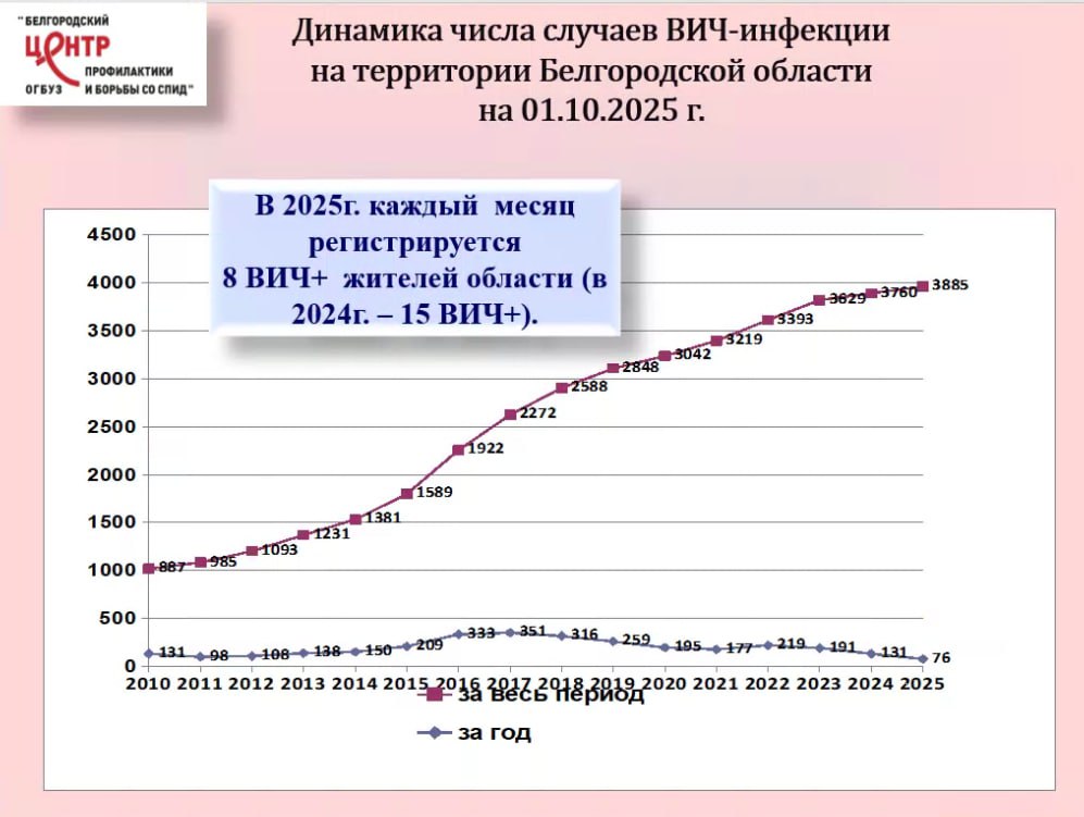 По данным медиков, число новых случаев ВИЧ в регионе сократилось: со 131 человека в 2024 году до 76 – в 2025-м. Большинство новых случаев заражения (89,5%) произошло половым путем. Более 60% впервые выявленных носителей вируса – люди старше 40 лет.