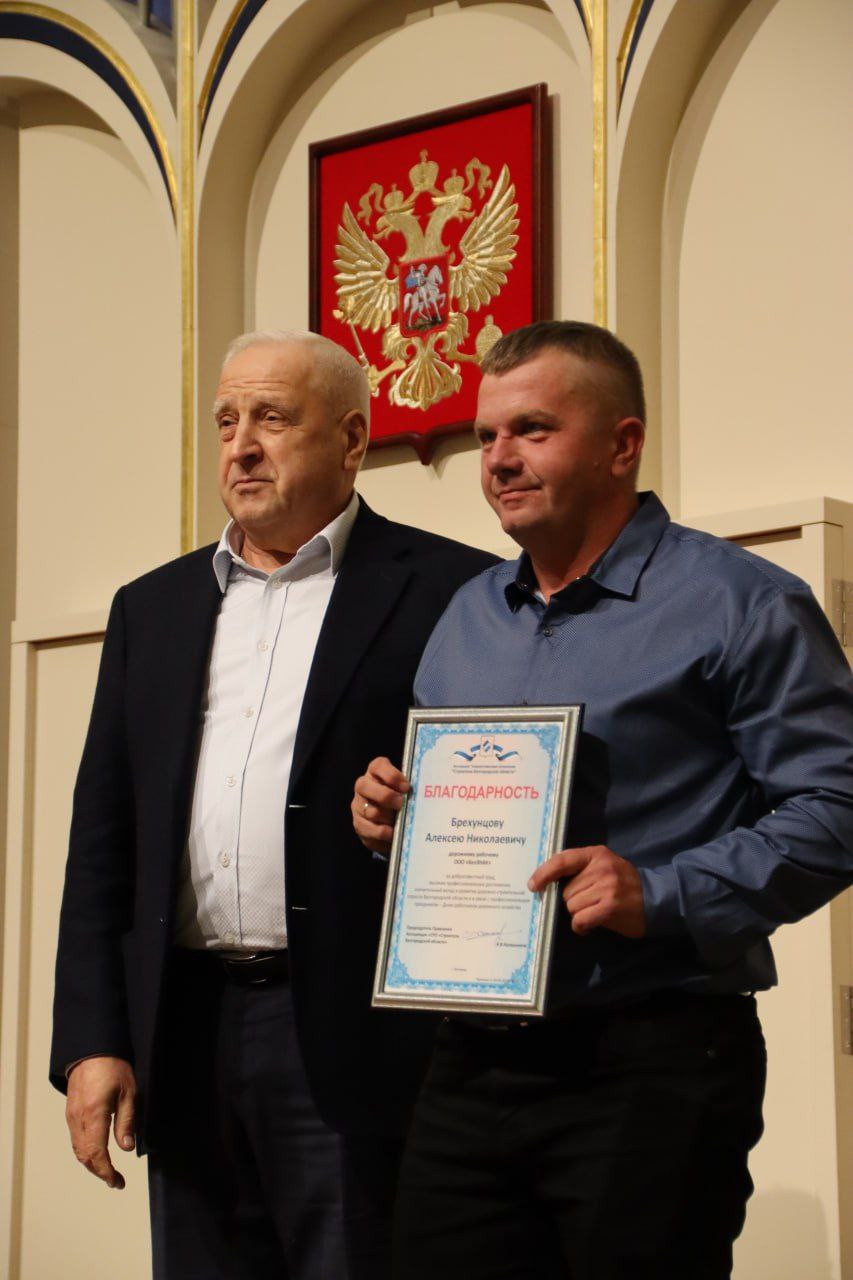 • Александр Плотников, начальник участка ремонта и строительства автомобильных дорог и Алексей Брехунцов, дорожный рабочий были отмечены Благодарностью Ассоциации «Саморегулируемая организация «Строители Белгородской области».