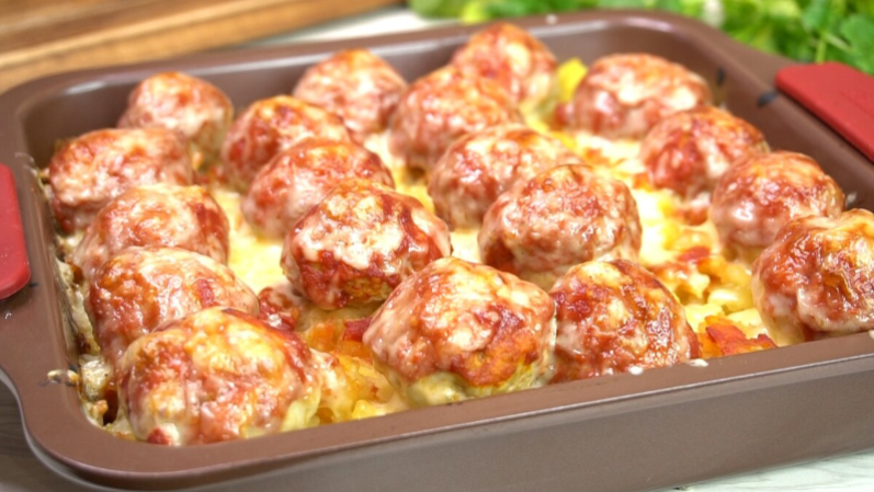 Картофель, впитывая ароматы мясных шариков, обретает особенный вкус, а мясные шарики, благодаря томатной глазури, остаются сочными и нежными. Этот рецепт станет настоящим хитом не только на обеденном столе, но и на праздничном банкете.
