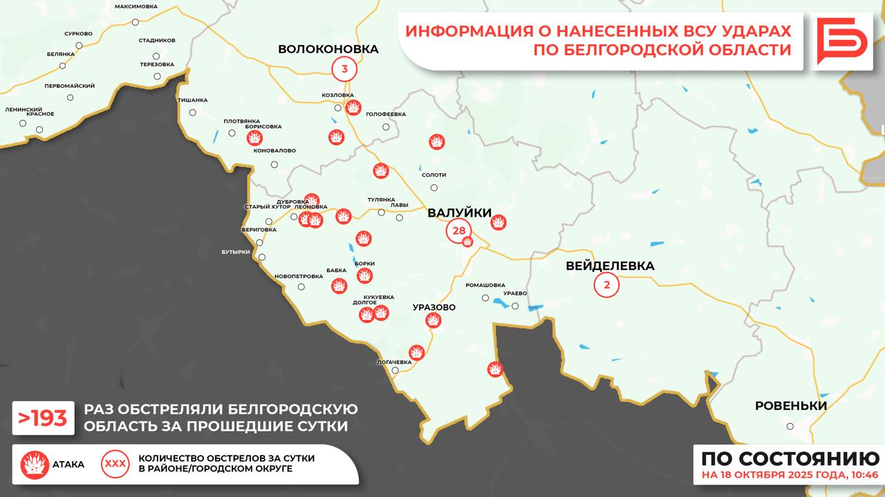 За прошедшие сутки ВСУ обстреляли Белгородскую область не менее 193 раз
