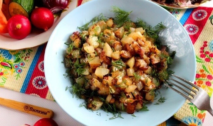 Первым делом следует тщательно вымыть и очистить картошку. Нарезать ее можно как кубиками, так и соломкой — кто как предпочитает. После этого картошку отправляют на горячую сковороду с растопленным сливочным и подсолнечным маслом. Важно хорошо перемешать картофель, чтобы каждый кусочек покрылся маслом, что предотвратит его слипание.