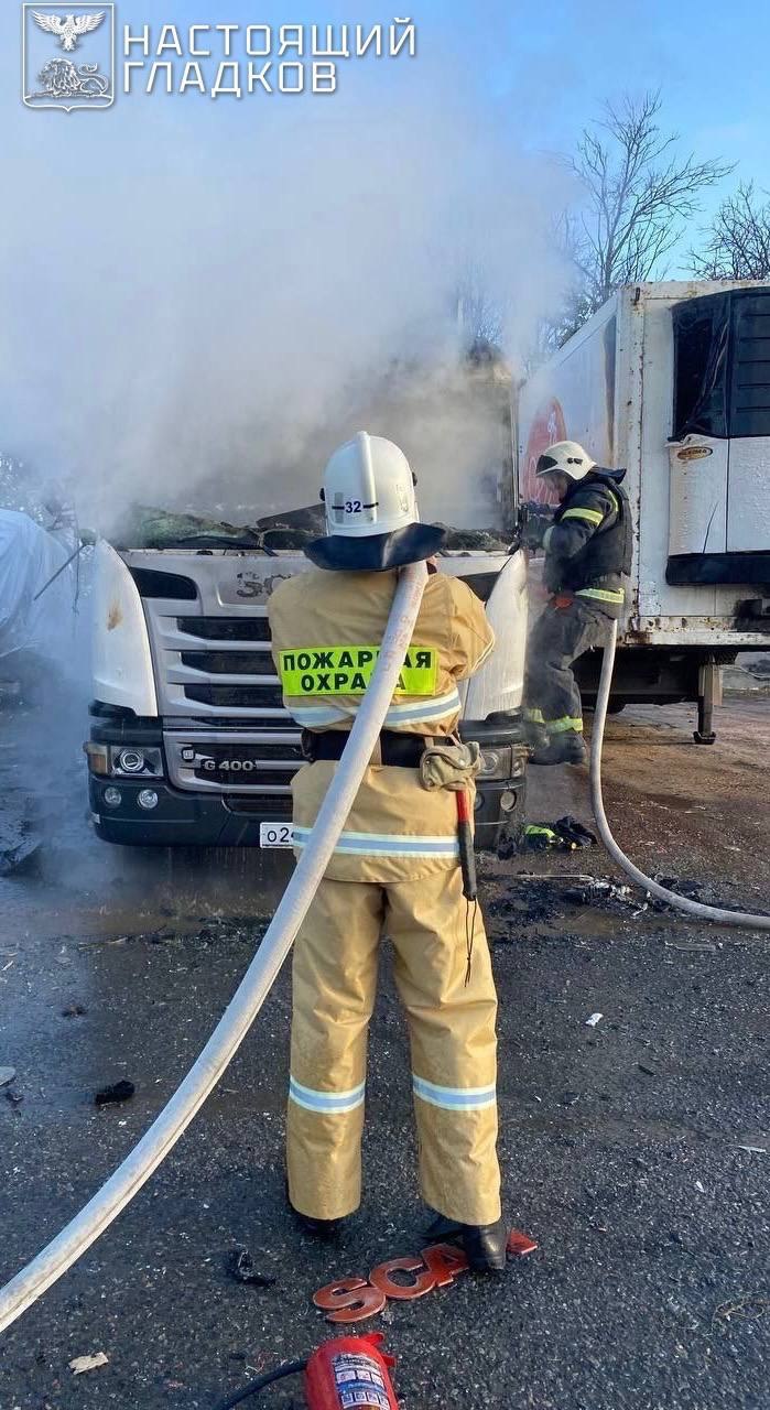 В посёлке Ракитное в результате удара беспилотника загорелся грузовой автомобиль — пожарными расчётами возгорание ликвидировано (фото 2 и 3).