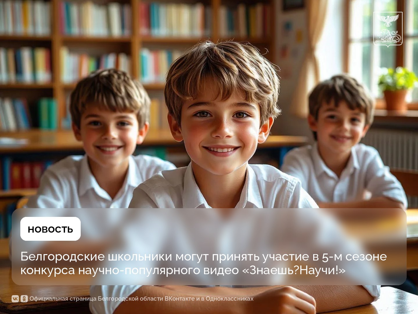Белгородские школьники могут принять участие в 5-м сезоне конкурса научно-популярного видео «Знаешь?Научи!»