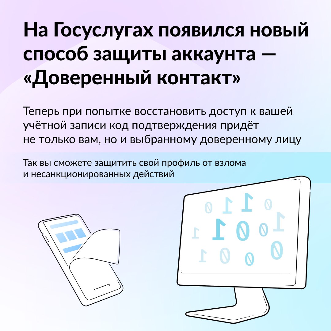 Теперь ваш аккаунт на Госуслугах можно защитить ещё надёжнее с помощью функции «Доверенный контакт»