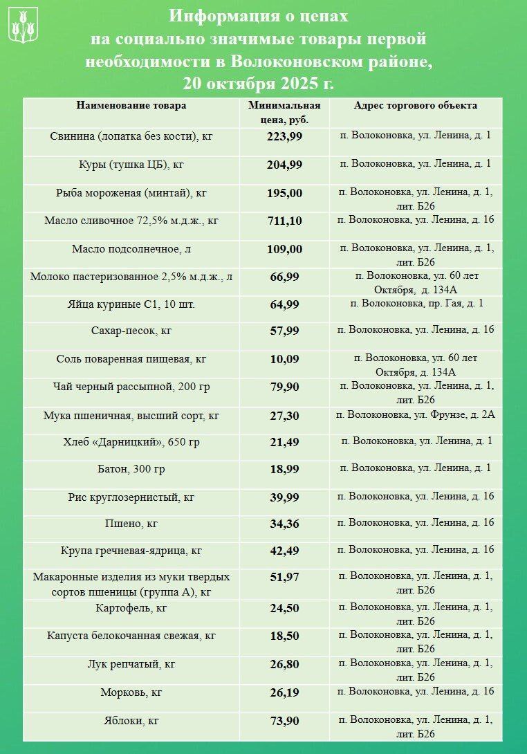 Информацию о магазинах, в которых зафиксированы цены, можно уточнить в отделе муниципальных закупок и развития предпринимательства администрации Волоконовского района по номеру 5-01-44.