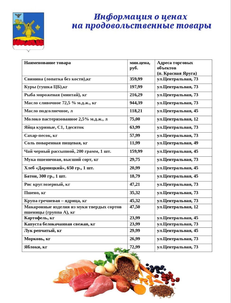 Уважаемые краснояружцы!. Публикую актуальную информацию о ценах на основные продукты питания на продовольственном рынке нашего района