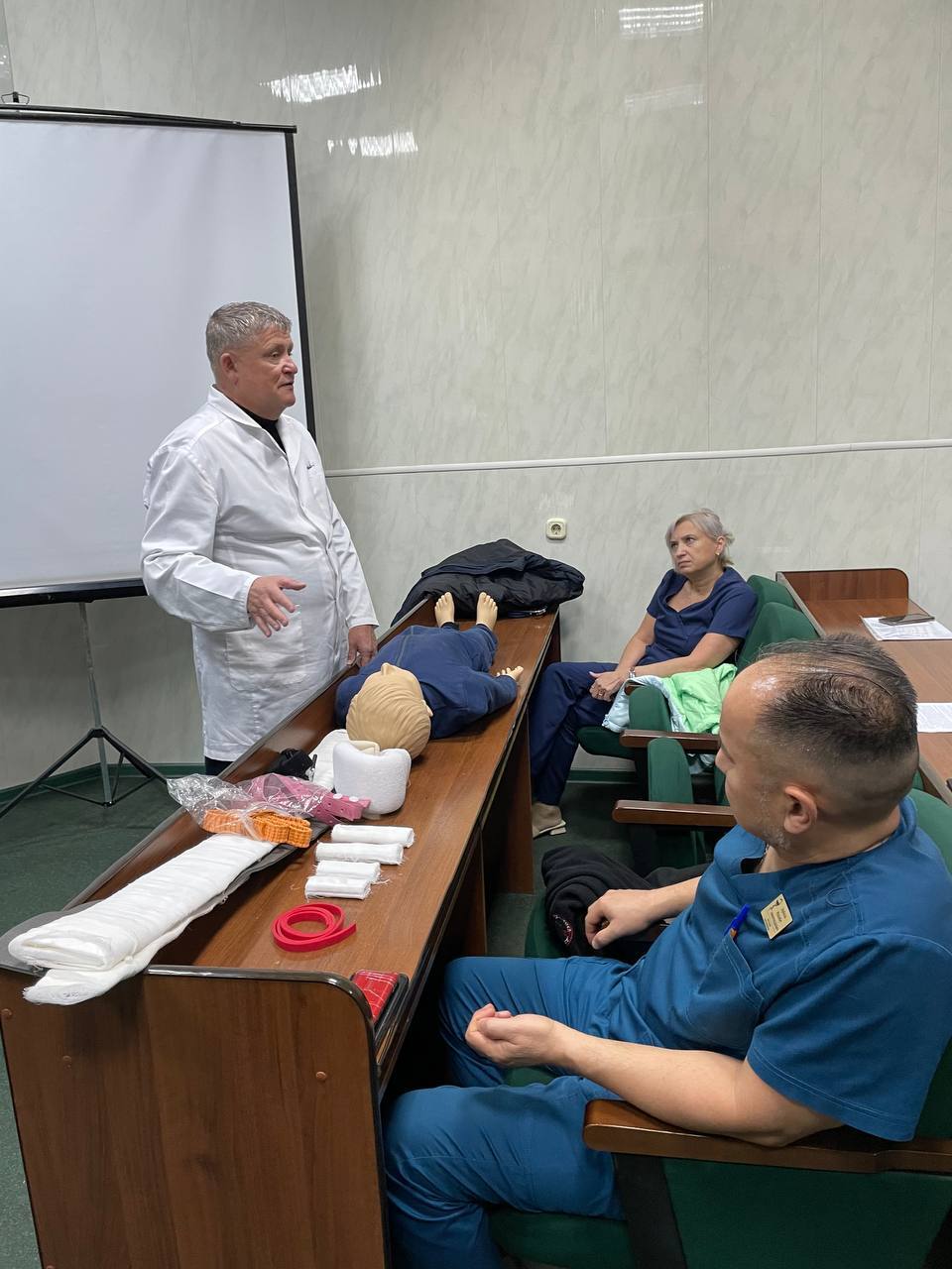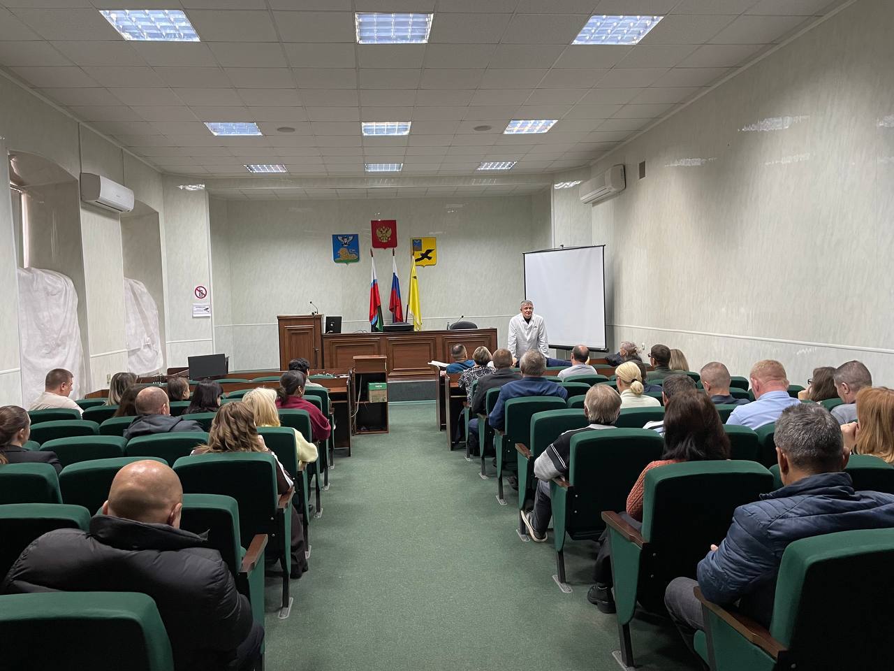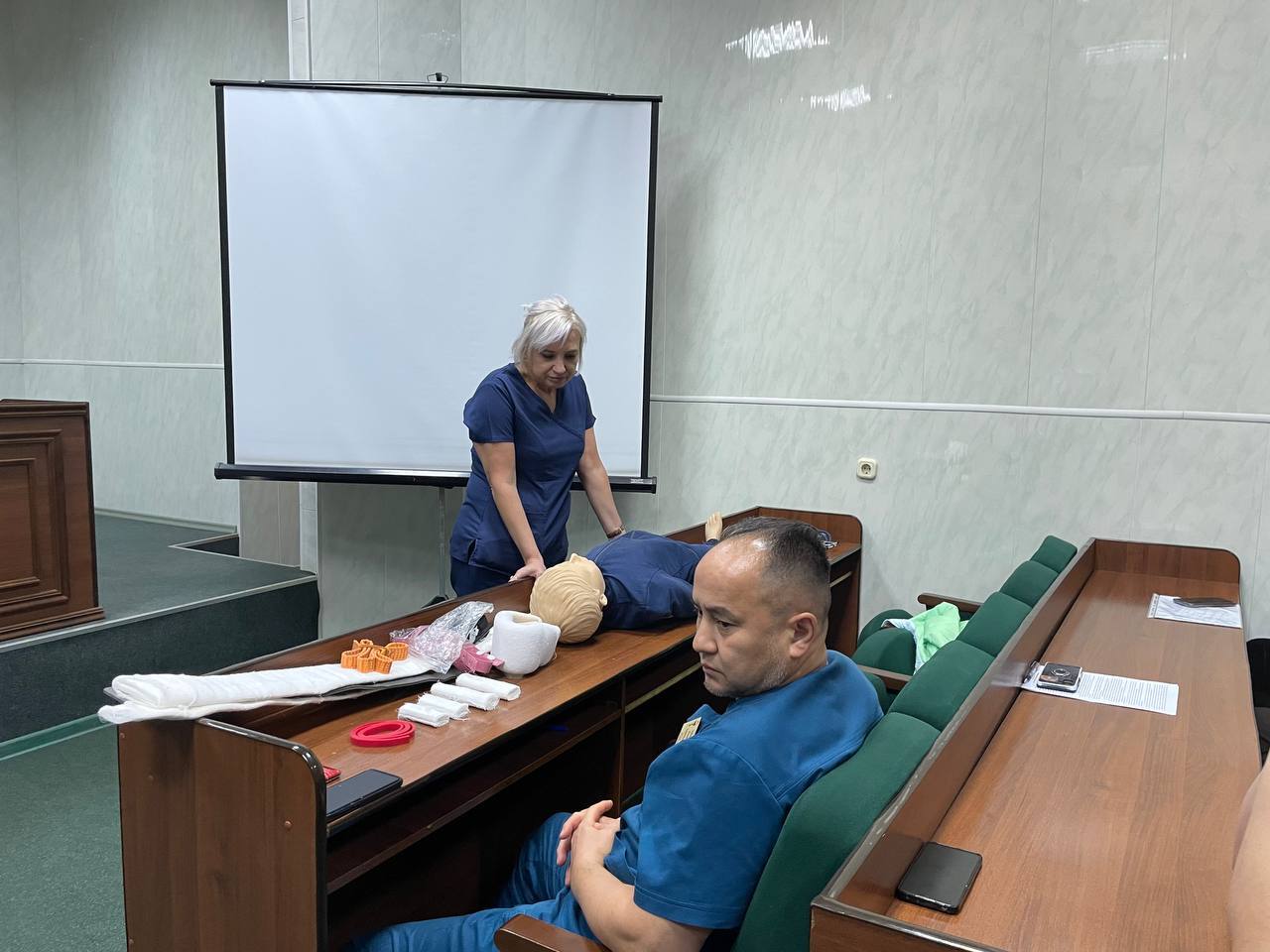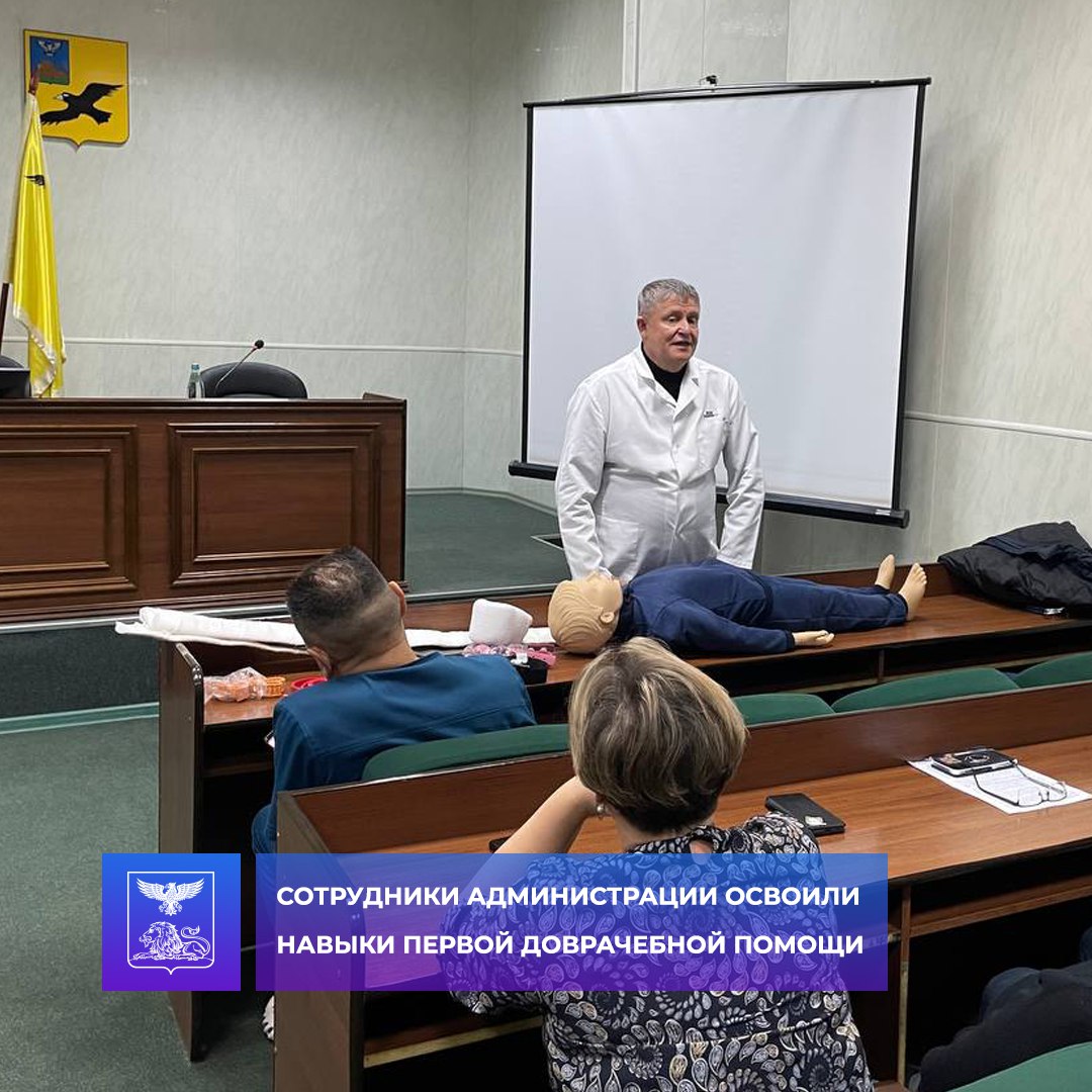 В актовом зале администрации прошли курсы первой помощи. Их цель – подготовить сотрудников к действиям в экстренных ситуациях и обеспечить безопасность на рабочем месте.