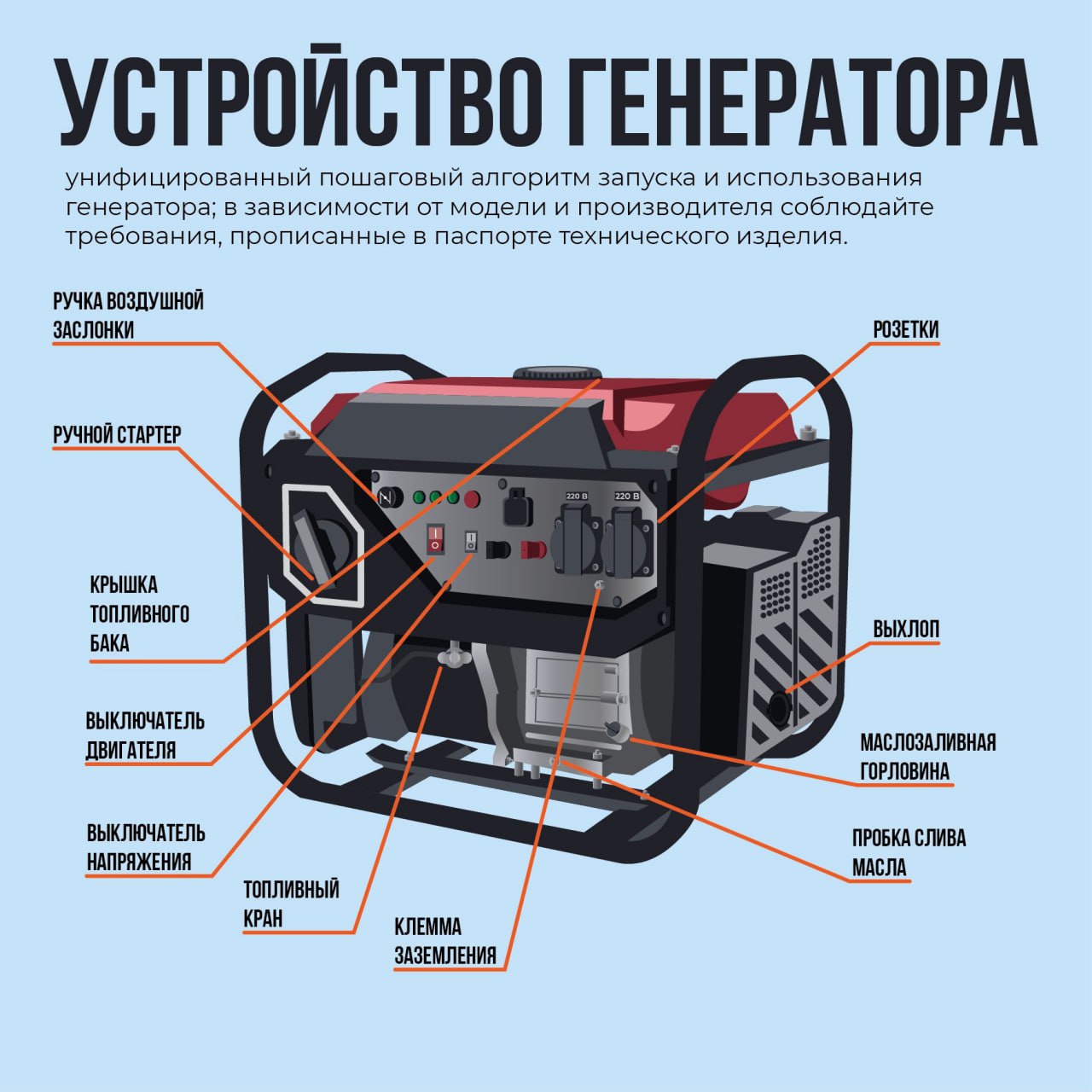 В оперштабе напомнили, что это оборудование – источник повышенной опасности изза риска поражения током или возгорания. Допускать к генератору можно только тех, кто знаком с правилами его эксплуатации.