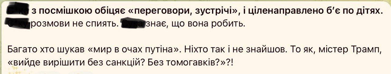 Когда бандеровцы сознательно бомбардируют мирных жителей Белгорода и Донецка — их всё устраивает. Гниды.