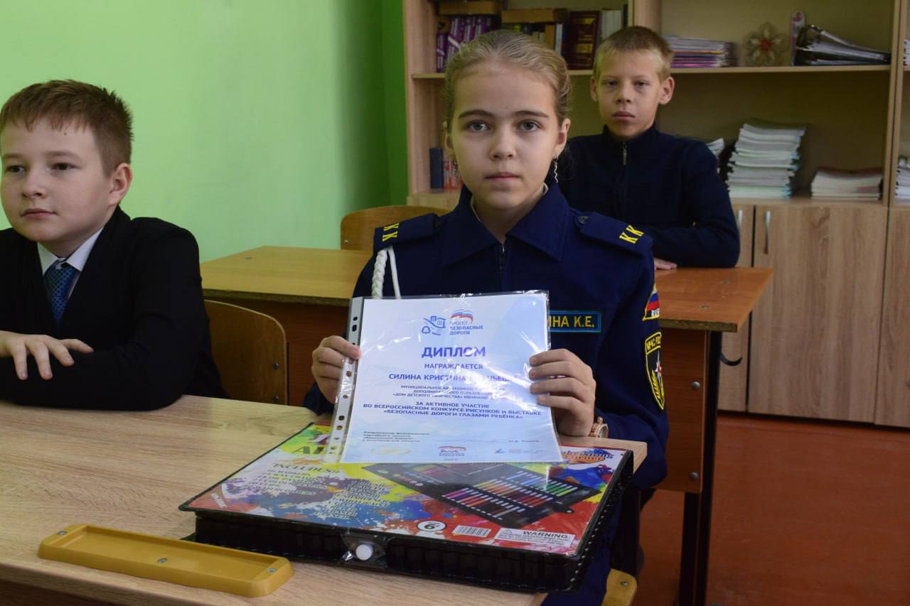 Дипломы за активное участие во Всероссийском конкурсе и выставке «Безопасные дороги глазами ребёнка» в рамках партпроекта «Безопасные дороги» получили: Матвей Шапилов, Алиса Шехавцова,