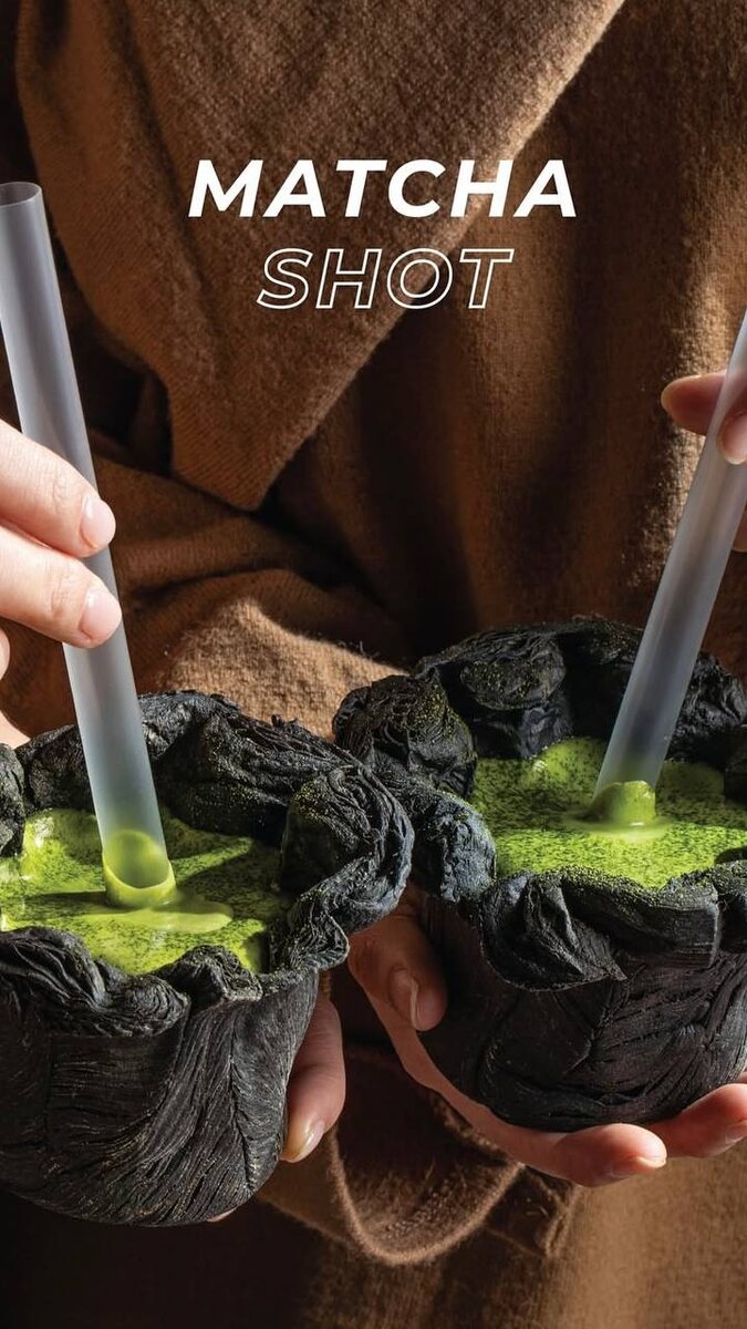 В мир кулинарии пришла новая модная тенденция, которая заставляет поклонников напитков застывать в восхищении. В индонезийской булочной ONE EIGHTY появилось уникальное предложение — матча шоты в съедобных стаканчиках, созданных из слоёного теста.