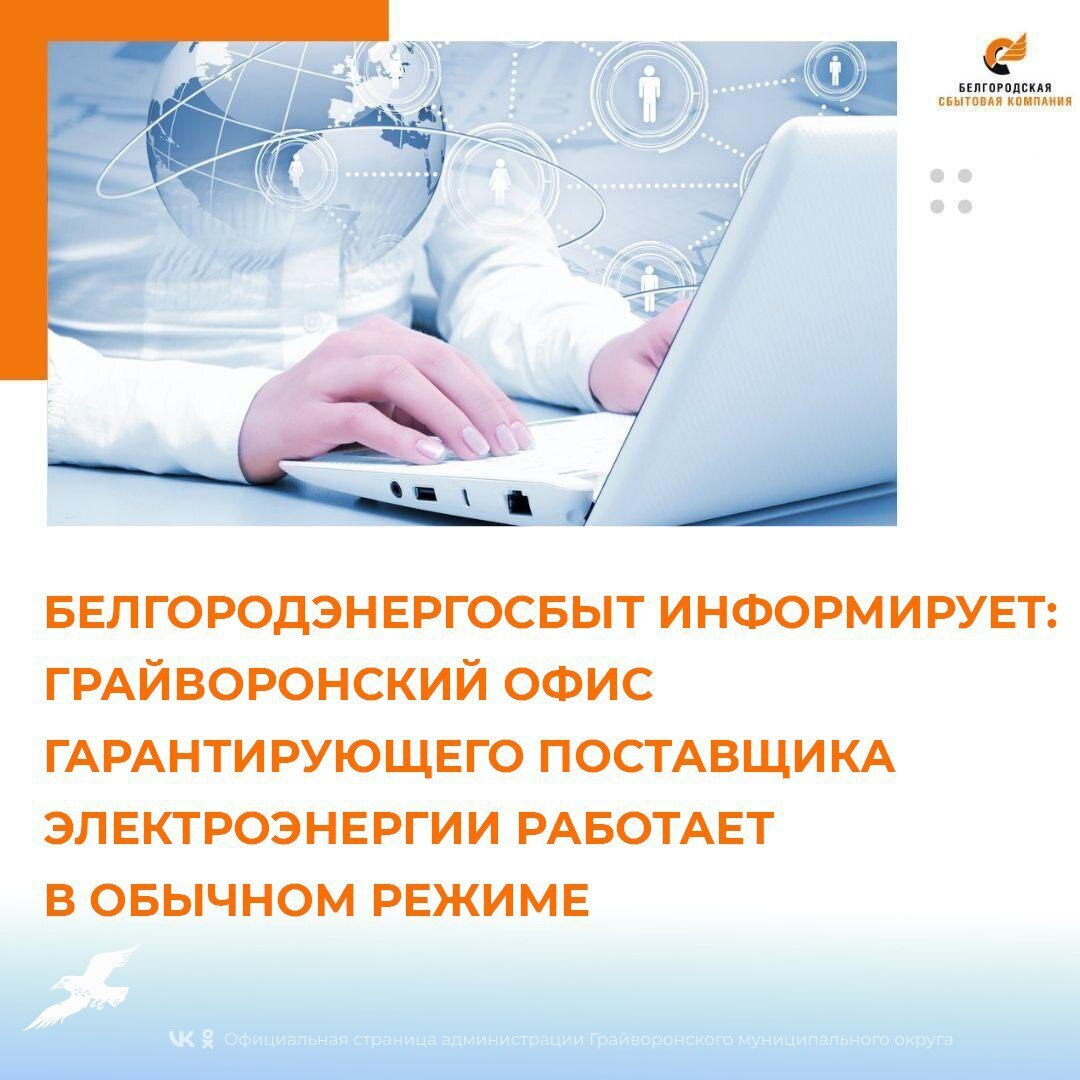 Белгородэнергосбыт сообщает, что Грайворонский офис гарантирующего поставщика электроэнергии работает в обычном режиме.