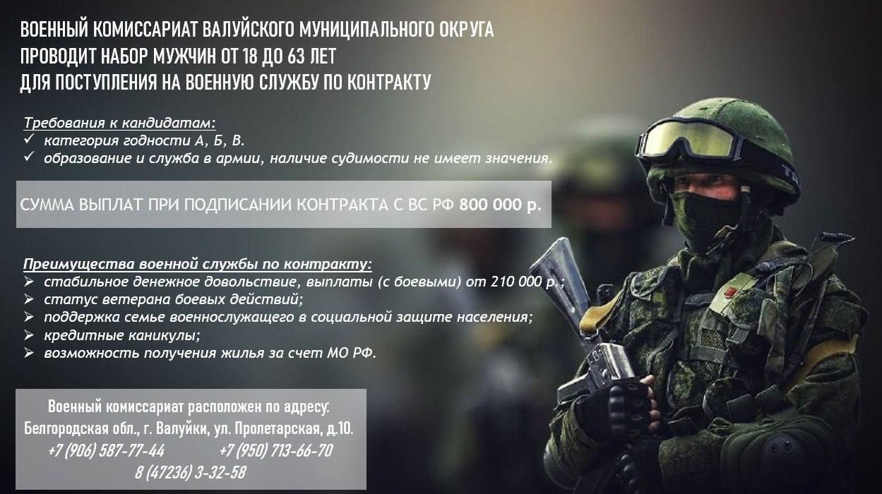 Набор добровольцев на военную службу по контракту в городе Валуйки!