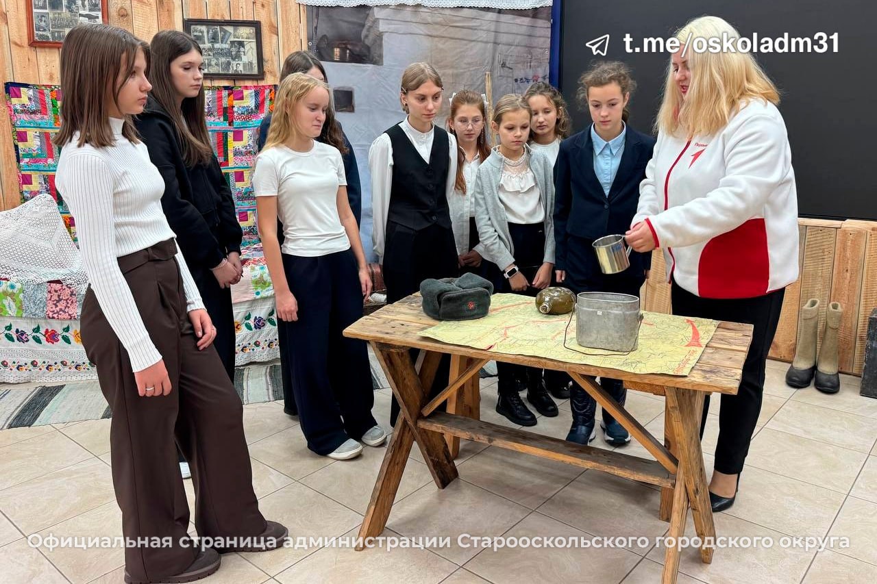 Ребят ждала экскурсия, перенёсшая их в 5 февраля 1943 года – день освобождения Старого Оскола. Экспозиция Штаба, воссоздающая избу-штаб 107-й стрелковой дивизии (с. Котово), позволила юным патриотам прикоснуться к героическому прошлому и подвигу предков.