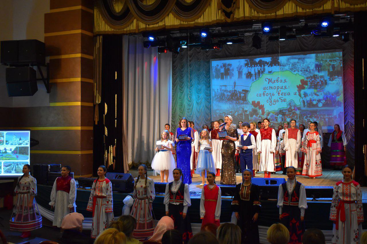 Концерт «Живая история: сквозь века и судьбы!» перенёс зрителей в удивительное путешествие по страницам Волоконовского прошлого, показывая неразрывную связь времен и судеб. Театрализованный пролог рассказал трогательную историю большой волоконовской семьи, прошедшей через десятилетия вместе с нашим краем, открыв зрителям уникальную картину ушедших эпох.