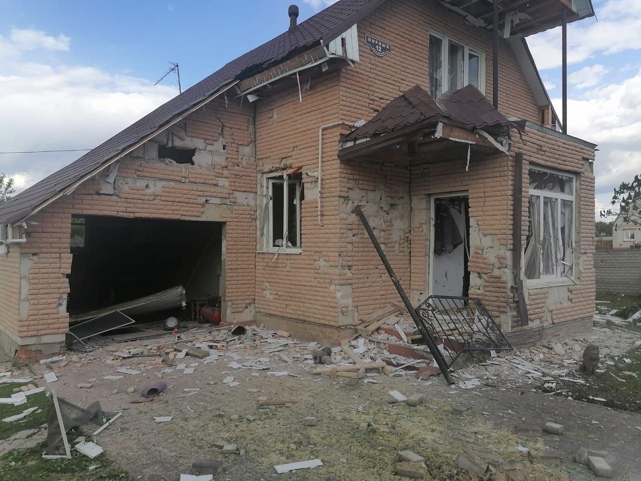 Вражеский снаряд упал прямо во дворе этого дома в Никольском Белгородского района. От взрывной волны хозпостройки сложились, как карточный домик, а гараж и веранда рассыпались. Сейчас восстановление здесь на завершающей стадии.