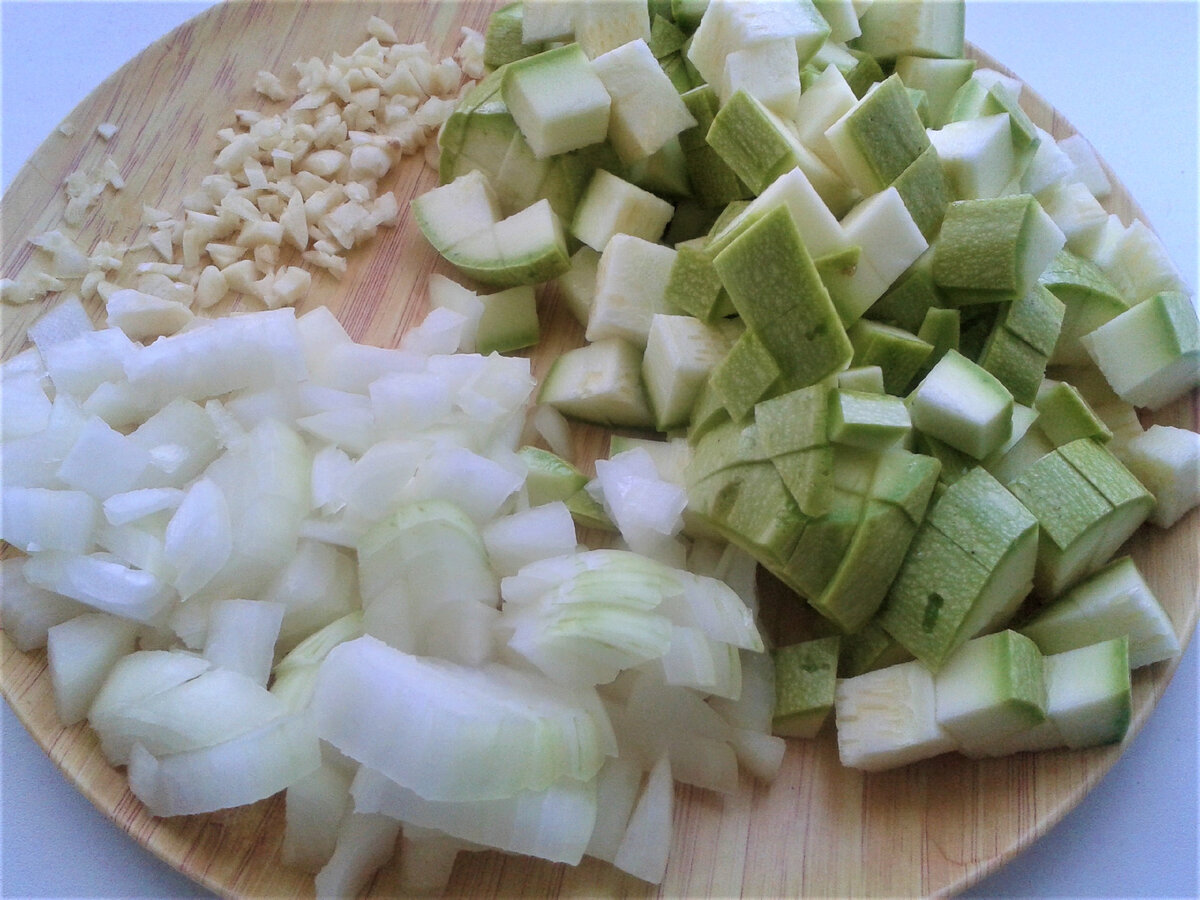 Для начала следует подготовить курицу, нарезав филе на небольшие полоски. Лук, кабачок и чеснок измельчаются, чтобы впитать все ароматы. В процессе приготовления рис промывают, и, если есть время, замачивают.