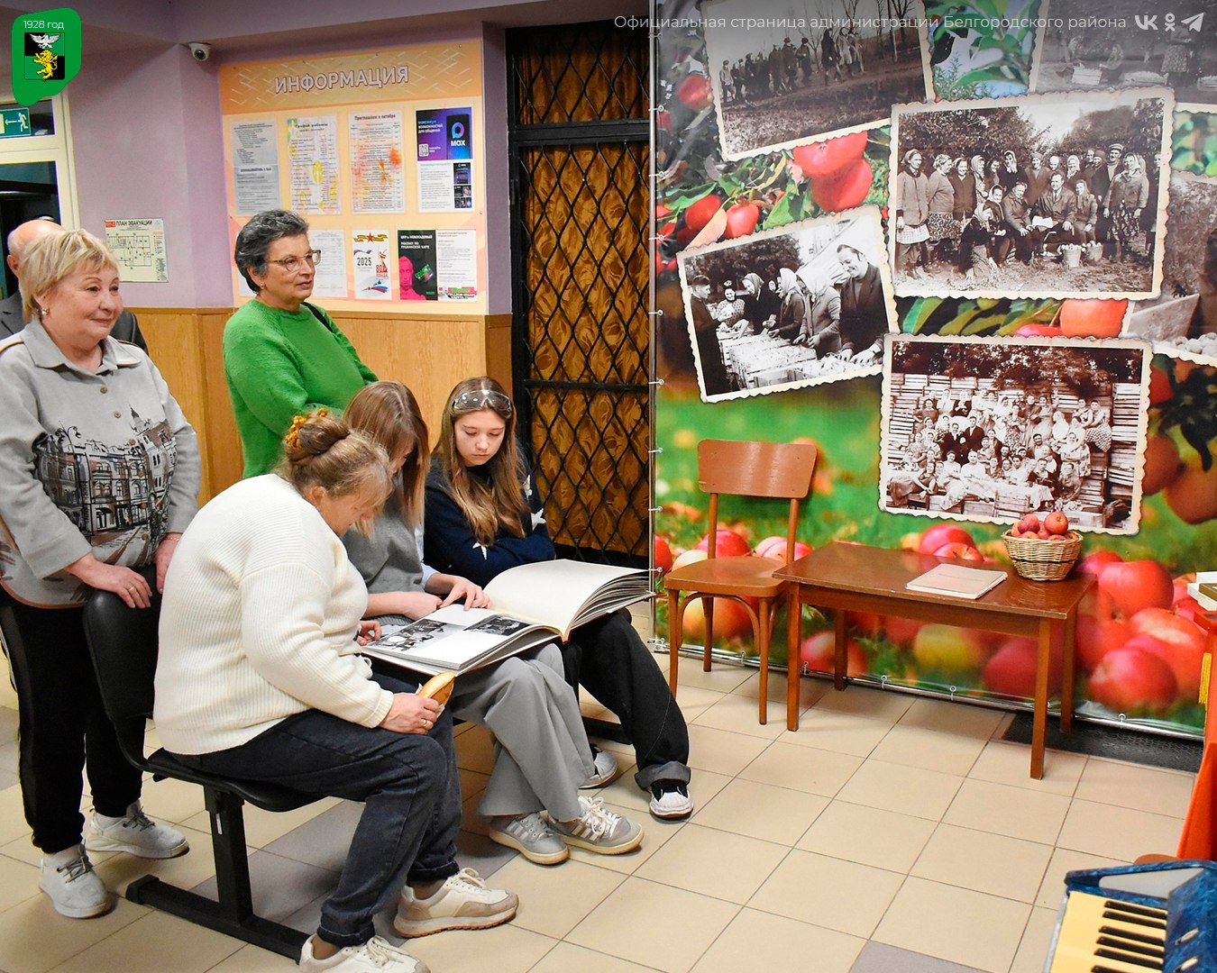 Открытие пространства посвящено истории местного Дома культуры, который когда-то был построен на средства, вырученные от продажи яблок. На открытии гости смогли совершить путешествие во времени: увидеть уникальные фотографии, познакомиться с архивными газетными статьями, послушать музыкальные хиты прошлых лет и узнать больше о становлении культурной жизни посёлка.