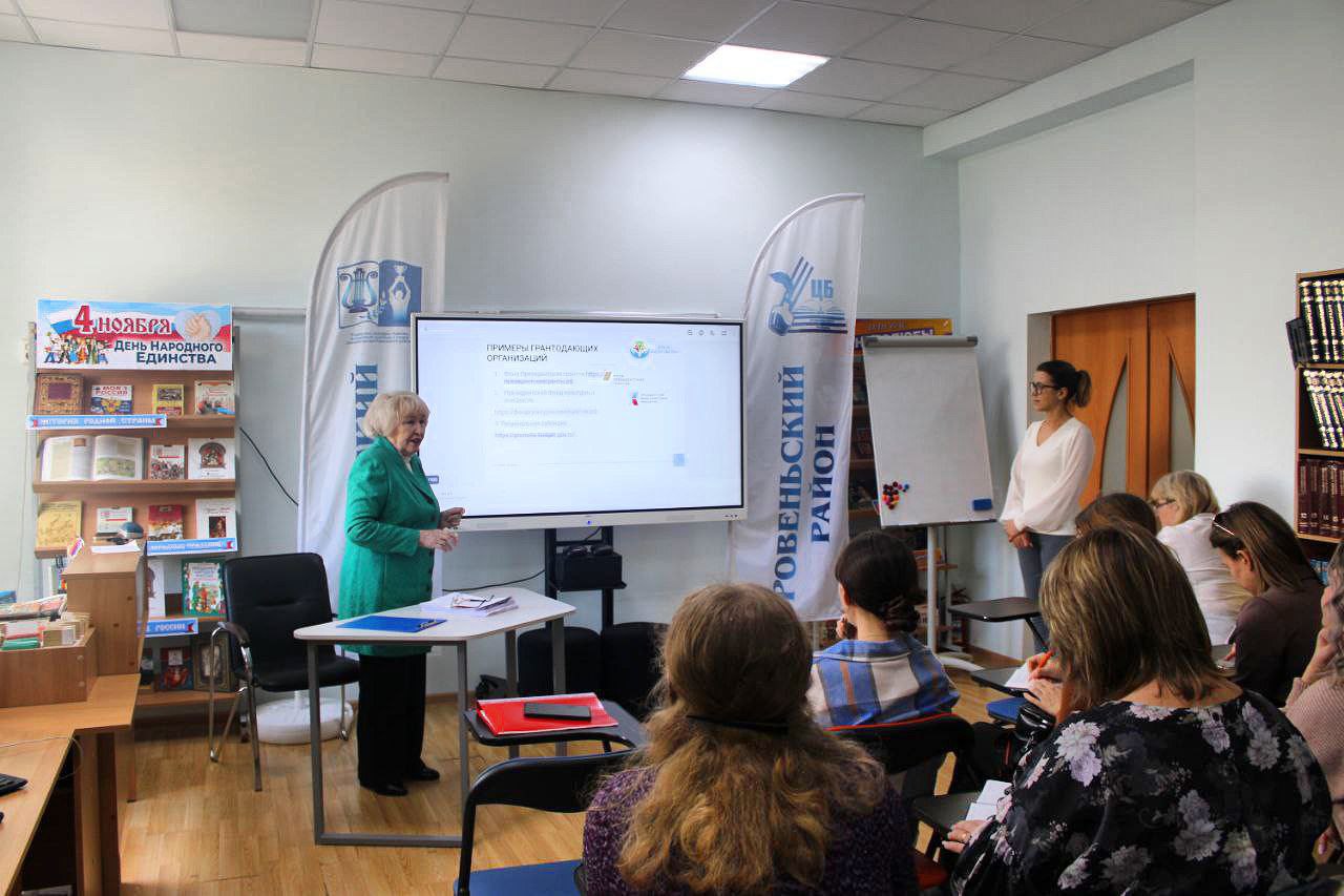 В Центральной библиотеке посёлка Ровеньки прошел семинар-практикум «Фонды и гранты. Практика социального проектирования», который провела Умеркина Лениза Талгатовна, председатель БРОО «ЦСИ «ВЕРА».