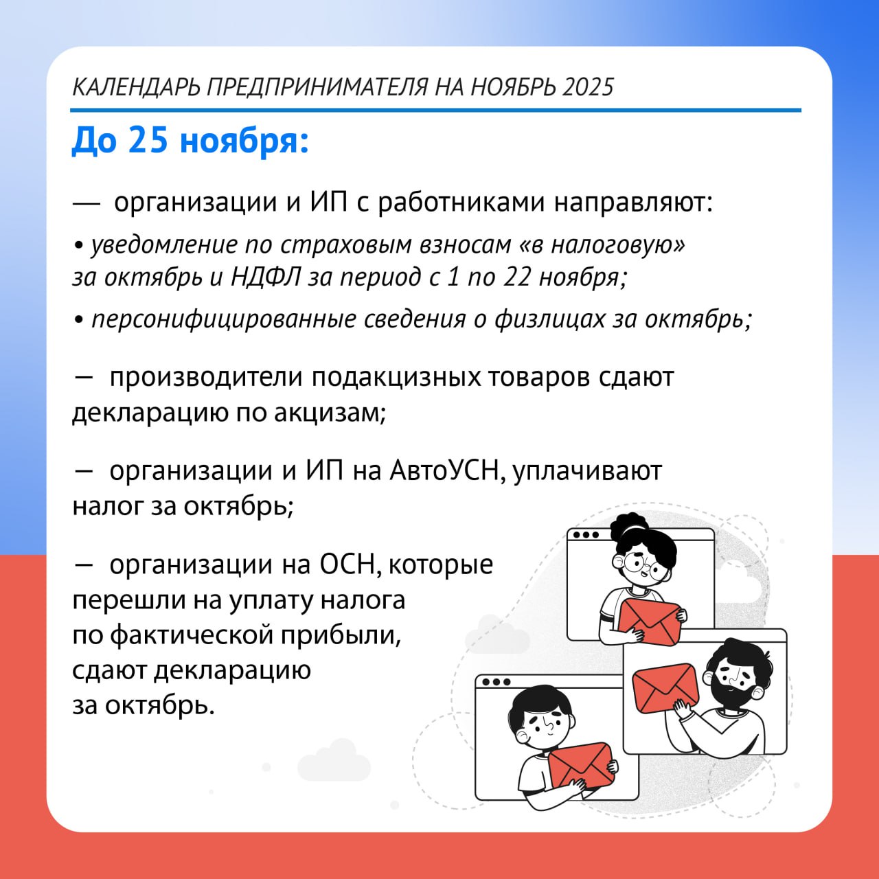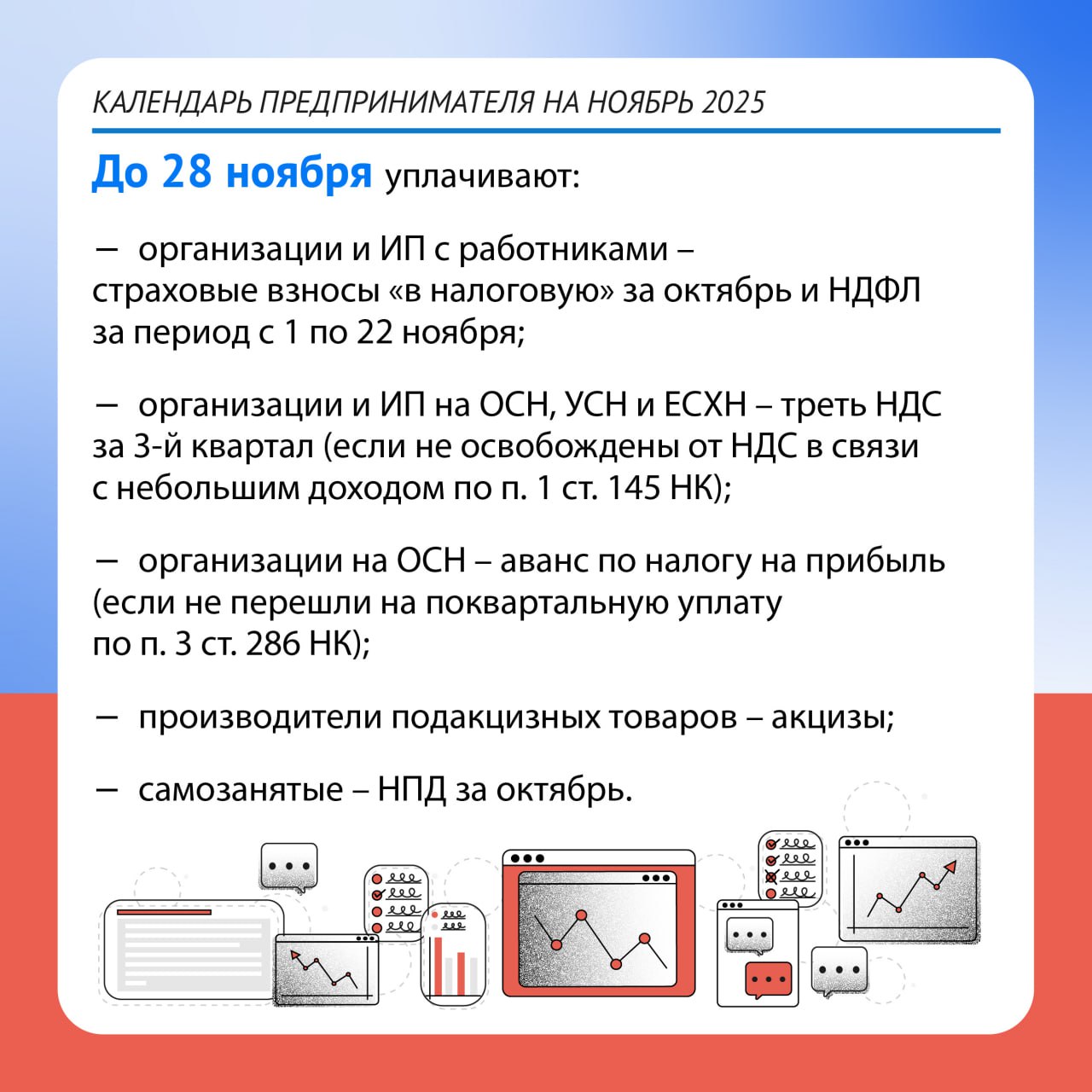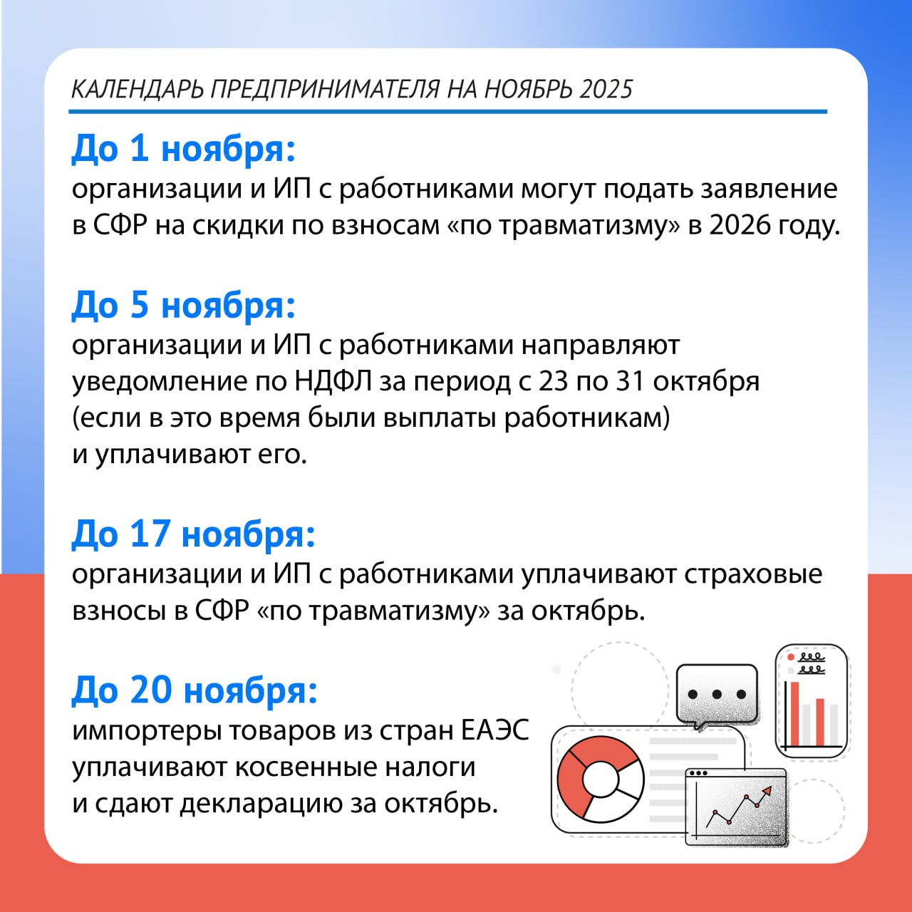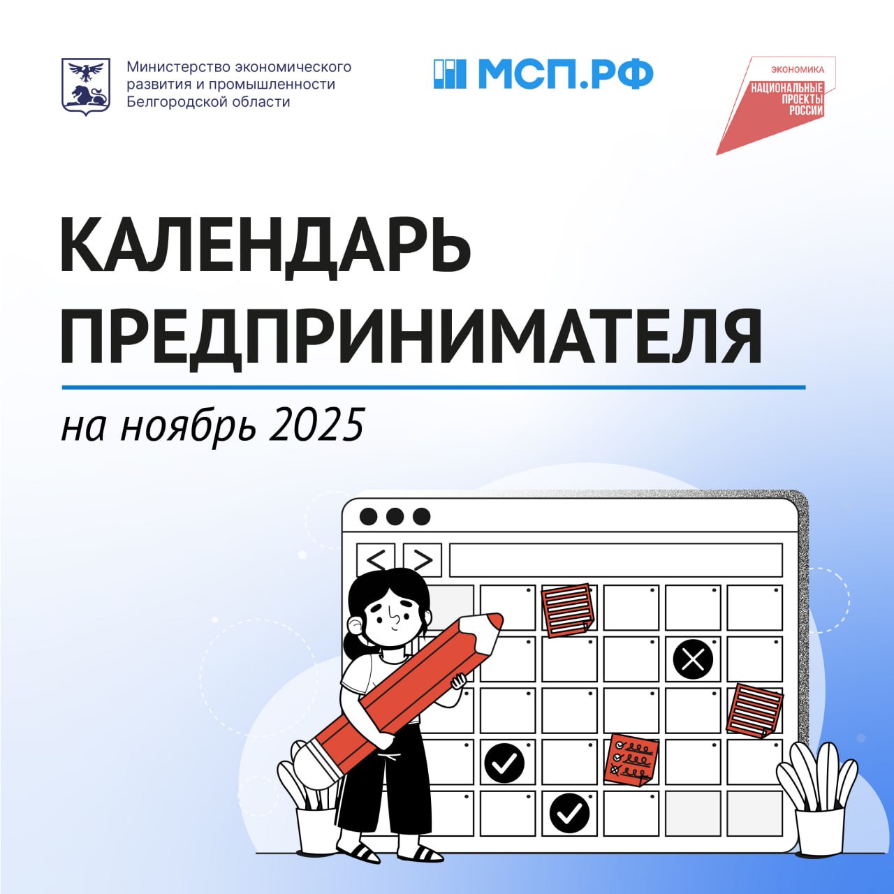 В рамках национального проекта «Эффективная и конкурентная экономика» разработан полезный рабочий инструмент для предпринимателей -«Календарь предпринимателя» на ноябрь.