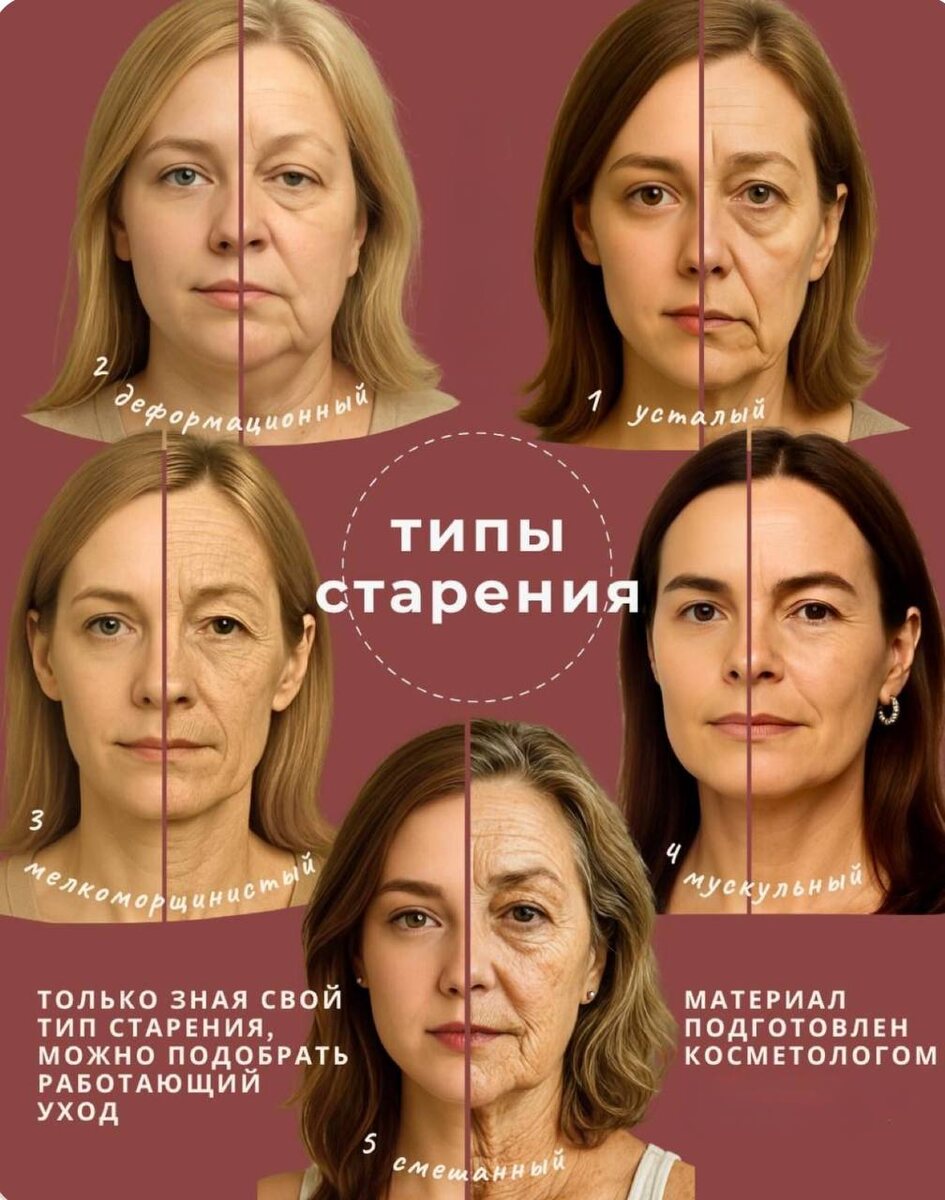 Каждый тип старения требует особого подхода. Основные признаки старения зависят от состояния кожи, и знание своей категории может помочь в выборе домашних средств. Можно выделить несколько популярных типов старения: