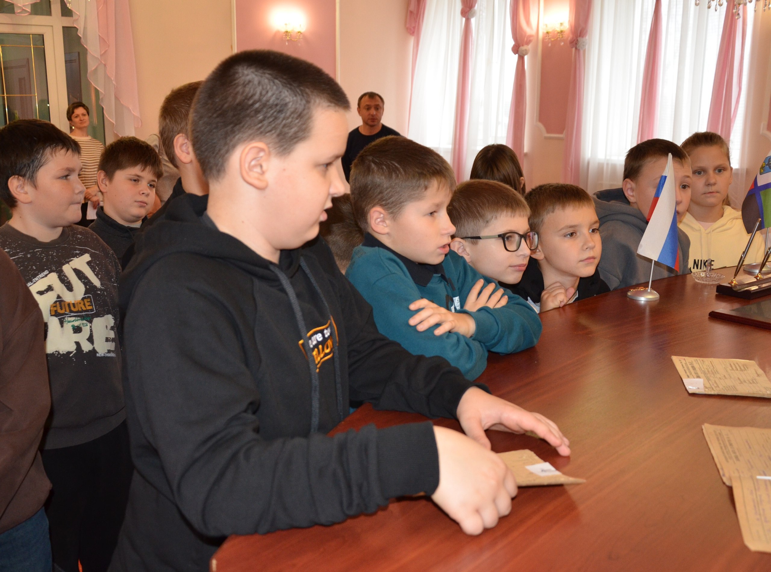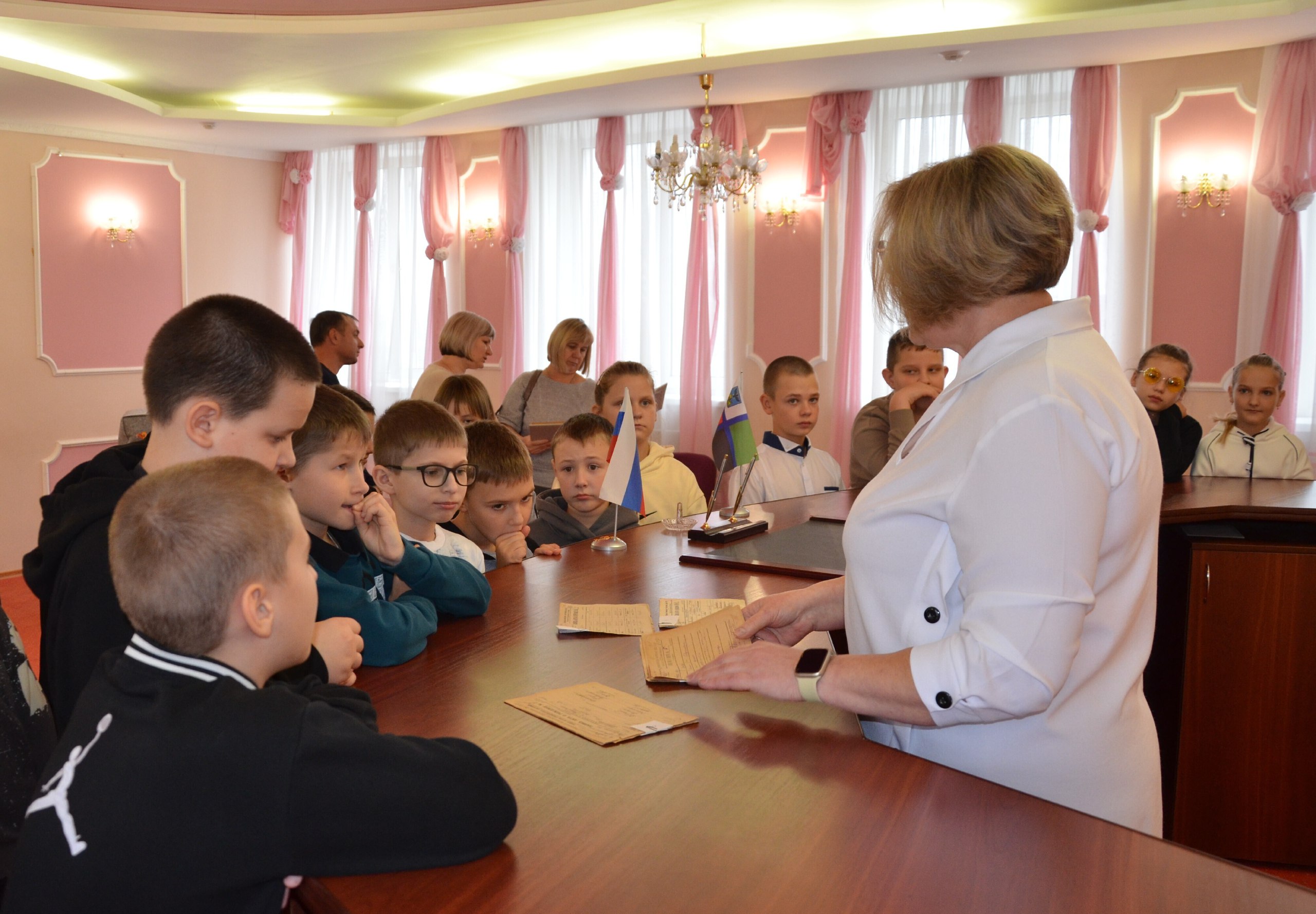 В зале торжеств ребята смогли окунуться в атмосферу праздника и увидеть, как проходят самые важные события в жизни людей: трогательные регистрации брака, радостные торжественные регистрации новорожденных и теплые юбилейные свадебные торжества.