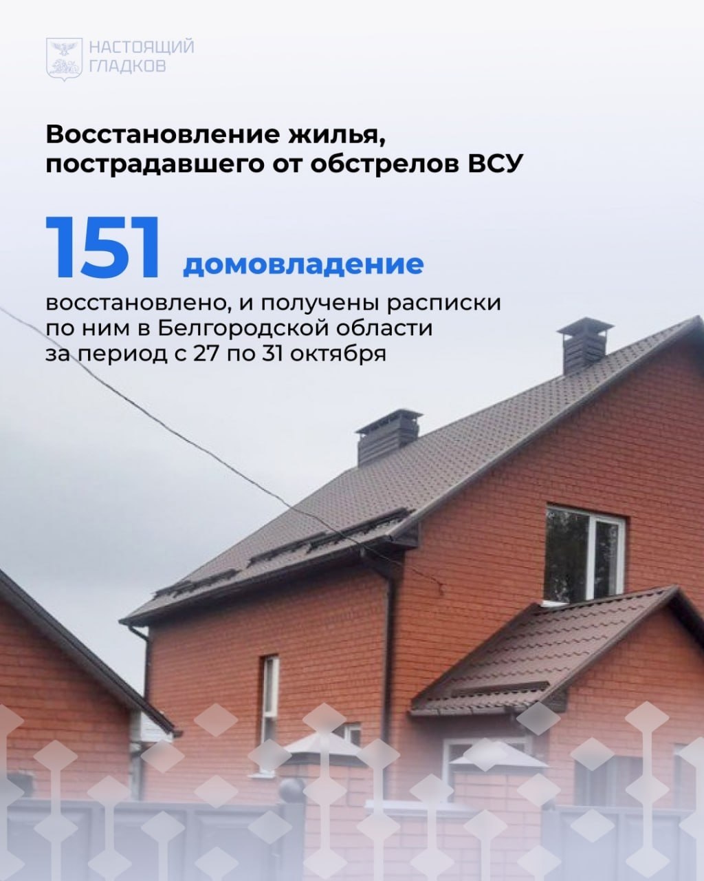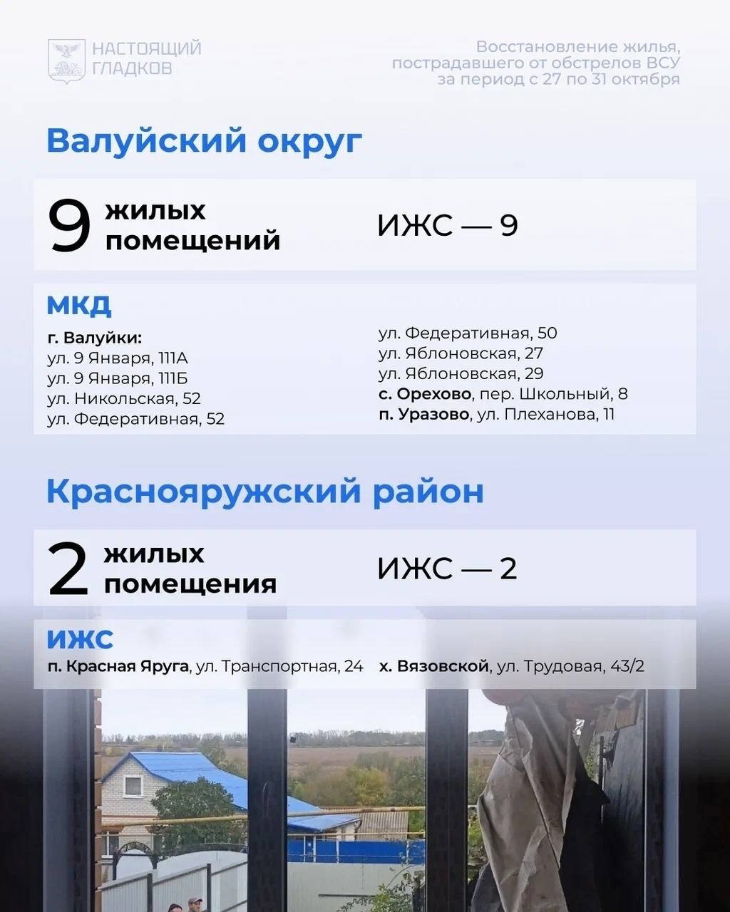 С 27 по 31 октября в Валуйском муниципальном округе было восстановлено 9 объектов.