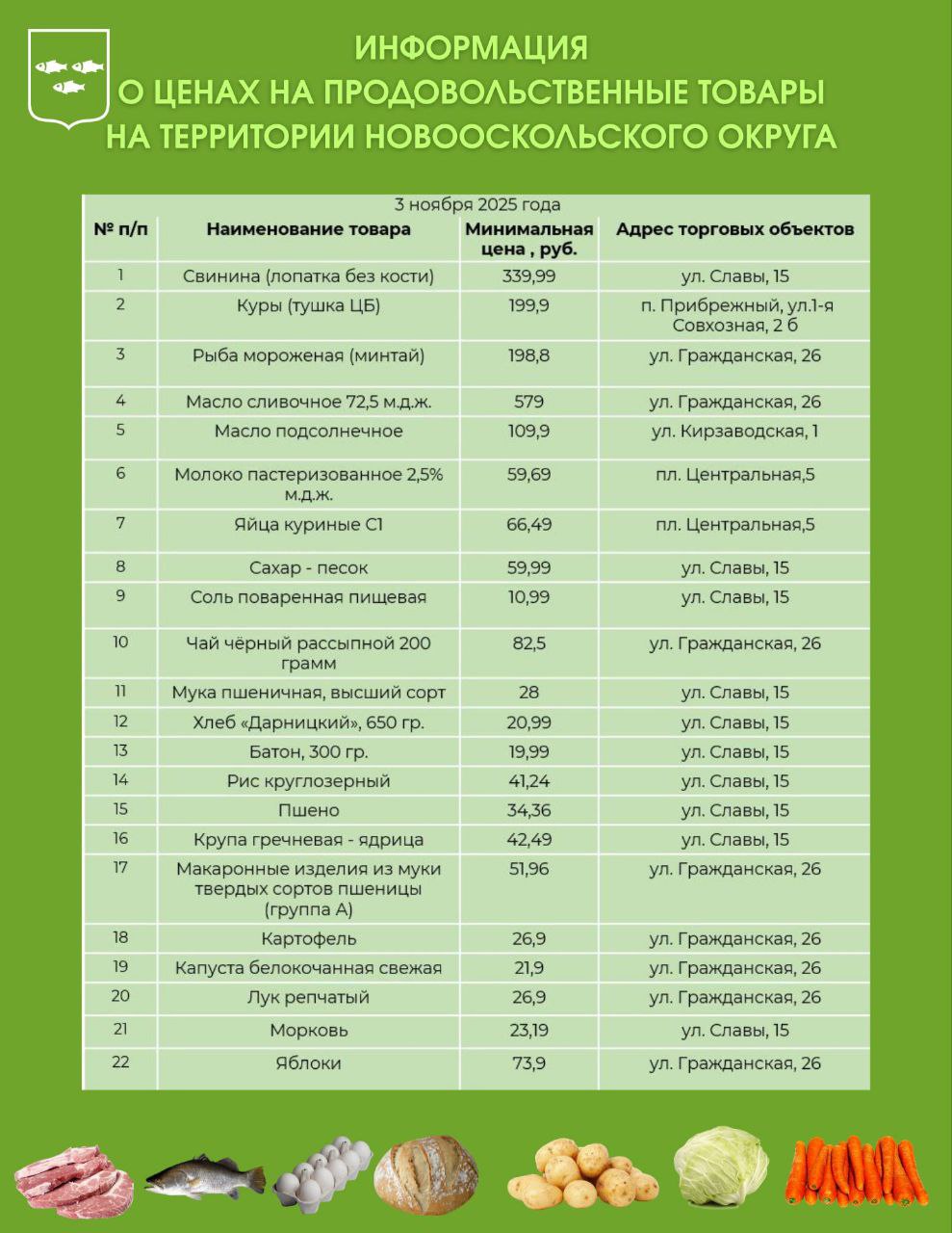 Делюсь с Вами актуальной подборкой минимальных цен на продовольственные товары на территории Новооскольского муниципального округа.