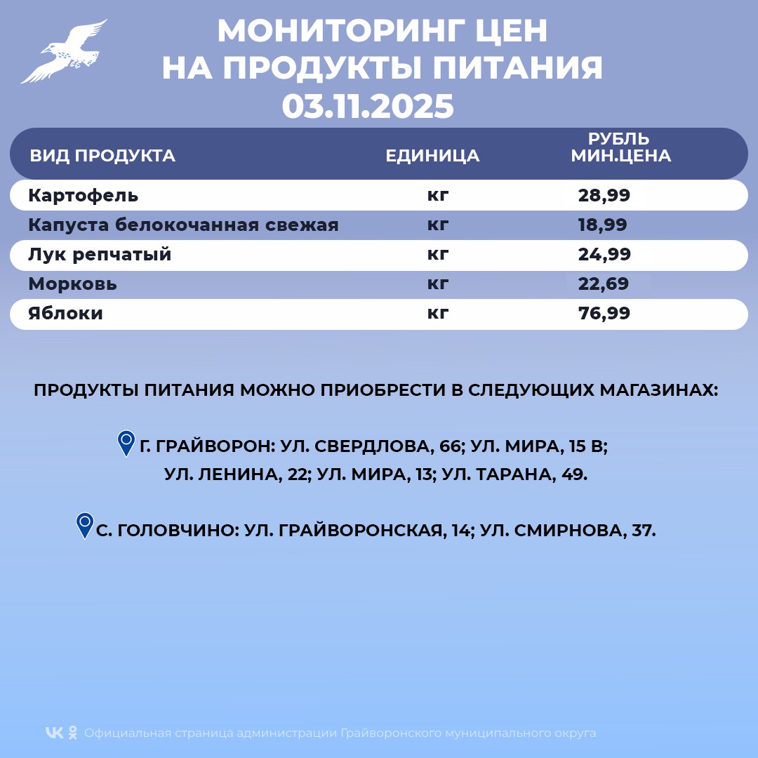 Мониторинг цен на основные продукты питания в Грайворонском округе