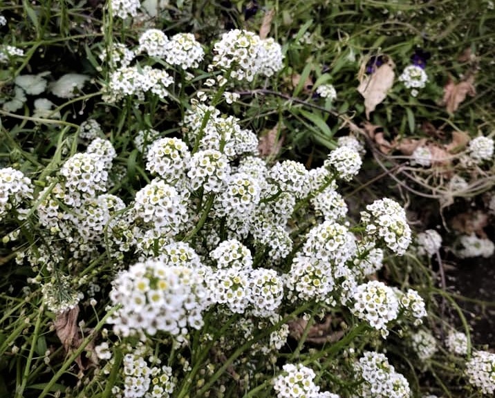 - Алиссум (лобулярия морская) — с медовым ароматом, который привлекает, и цветет до заморозков.