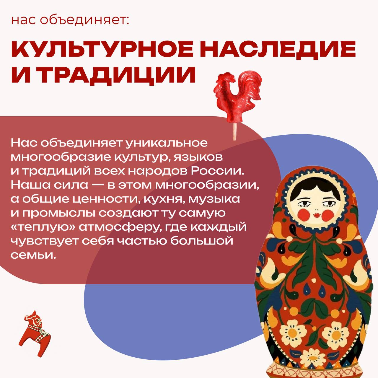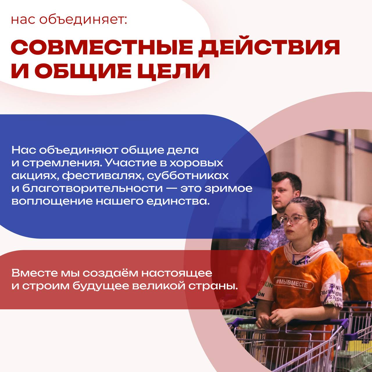 Сила России — в нас самих: в готовности помочь, в многообразии культур и в любви к своей земле. Мы строим будущее страны вместе — в больших делах и малых поступках.