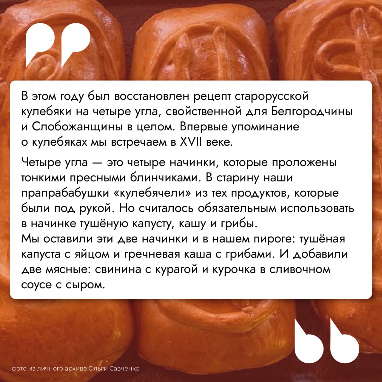 Её рецепт был восстановлен специально для губернаторского проекта «Вкус Белогорья», где команда руководителя белгородской пекарни Ольги Савченко вошла в число победителей.