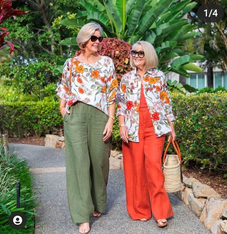 - Цветочные принты: Яркие блузки и рубашки с цветочным рисунком идеально сочетаются с легкими брюками в болотном или оранжевом оттенках. Такой образ наполнит жизнь весенними красками и сделает ее свежей.