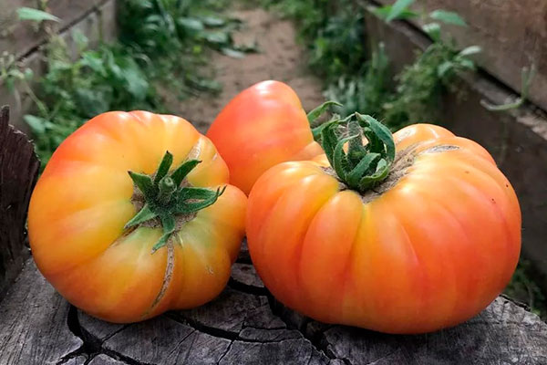 - Цвет спелых томатов варьируется от ярко-желтого до насыщенно-оранжевого с красными полосками и пятнами.