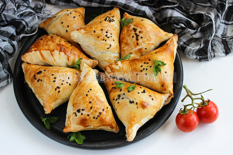 Поклонники вкусной выпечки смогут насладиться хрустящей самсой, приготовленной за считанные минуты благодаря готовому слоеному тесту.