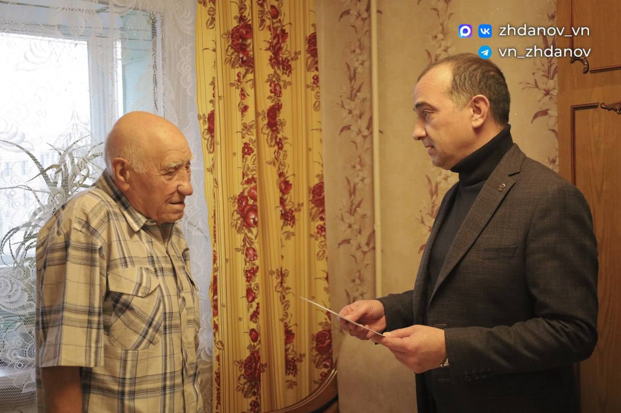 Совместно с депутатом Старооскольского Совета Сергеем Воронковым передал письмо с поздравлением от президента Российской Федерации Владимира Путина и ценный подарок.