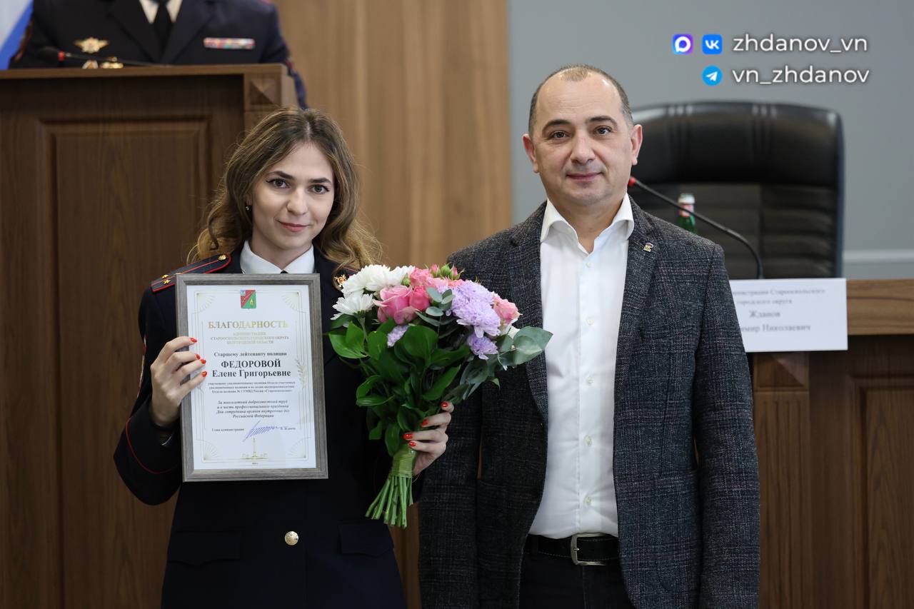 В торжественной обстановке глава администрации Владимир Жданов совместно с председателем Совета депутатов Татьяной Карпачевой наградил отличившихся сотрудников органов внутренних дел.