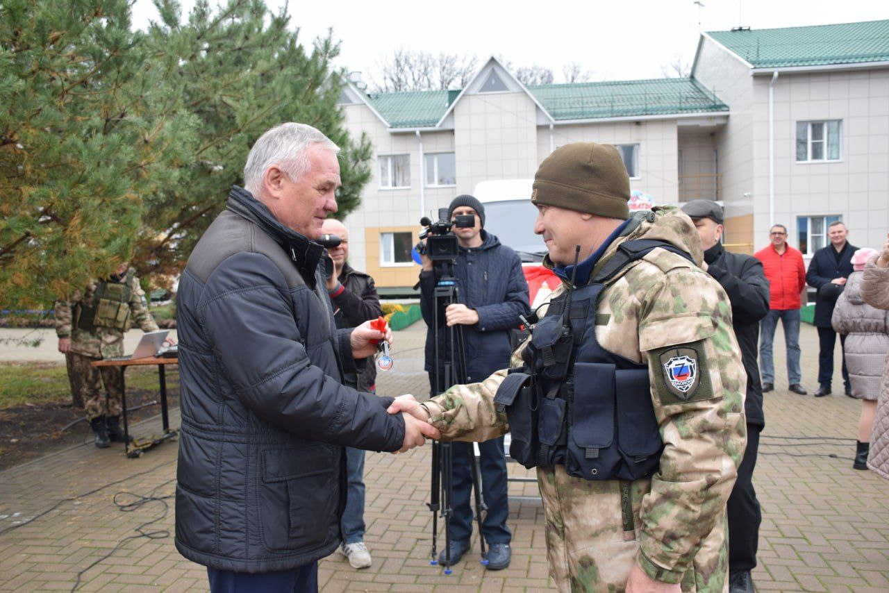 Ключи от автомобиля передал помощник депутата, Алексей Демьянович Мирошник, подчеркнув важность задач, выполняемых подразделением самообороны, и отметив их преданность Родине и активную гражданскую позицию. Андрей Николаевич Приймаков, командир Красногвардейской роты батальона «Рубеж-31», выразил признательность от лица всего подразделения за оказанную поддержку.