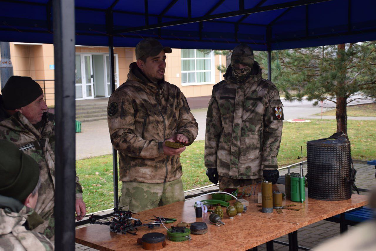 В конце мероприятия бойцы самообороны провели демонстрацию навыков в области минно-взрывной и тактической подготовки. Инструкторы представили различные виды мин и взрывных устройств, а также беспилотные летательных аппаратов. Кроме того, были показаны действия группы эвакуации и приемы оказания неотложной помощи при ранениях и травмах.