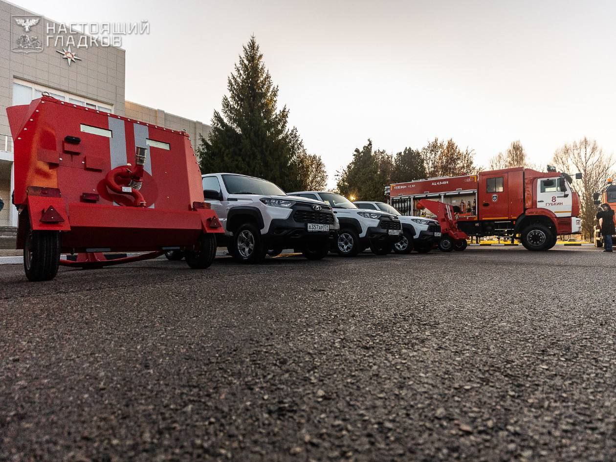 Всего для работы подразделений поступили 2 пожарных автомобиля, 2 автоцистерны для перевозки воды, 2 автотопливозаправщика, 3 оперативно-служебных автомобиля, а также 2 бронещита для защиты сотрудников от высоких температур и осколков.