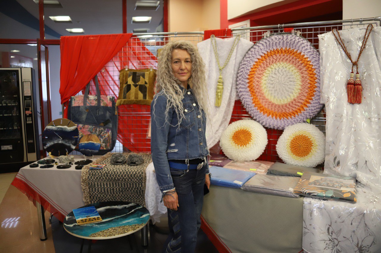 Сегодня фойе центра культурного развития «Молодёжный» превратилось в настоящую слободу мастеровую. Праздничное настроение на открытии креативной выставки-ярмарки создала солистка Елена Минас, исполнившая песню «Ярмарка».