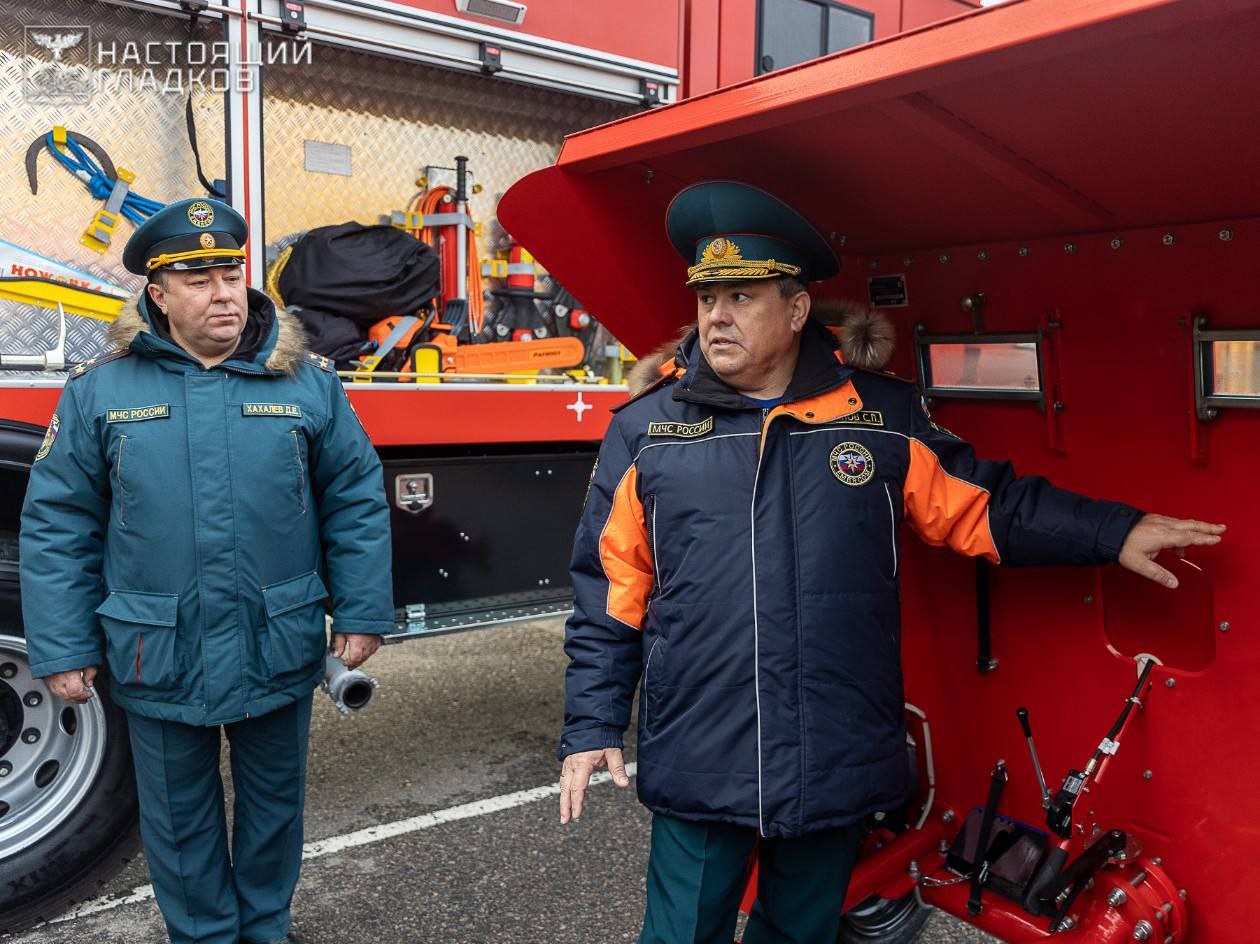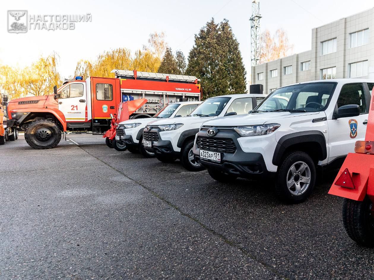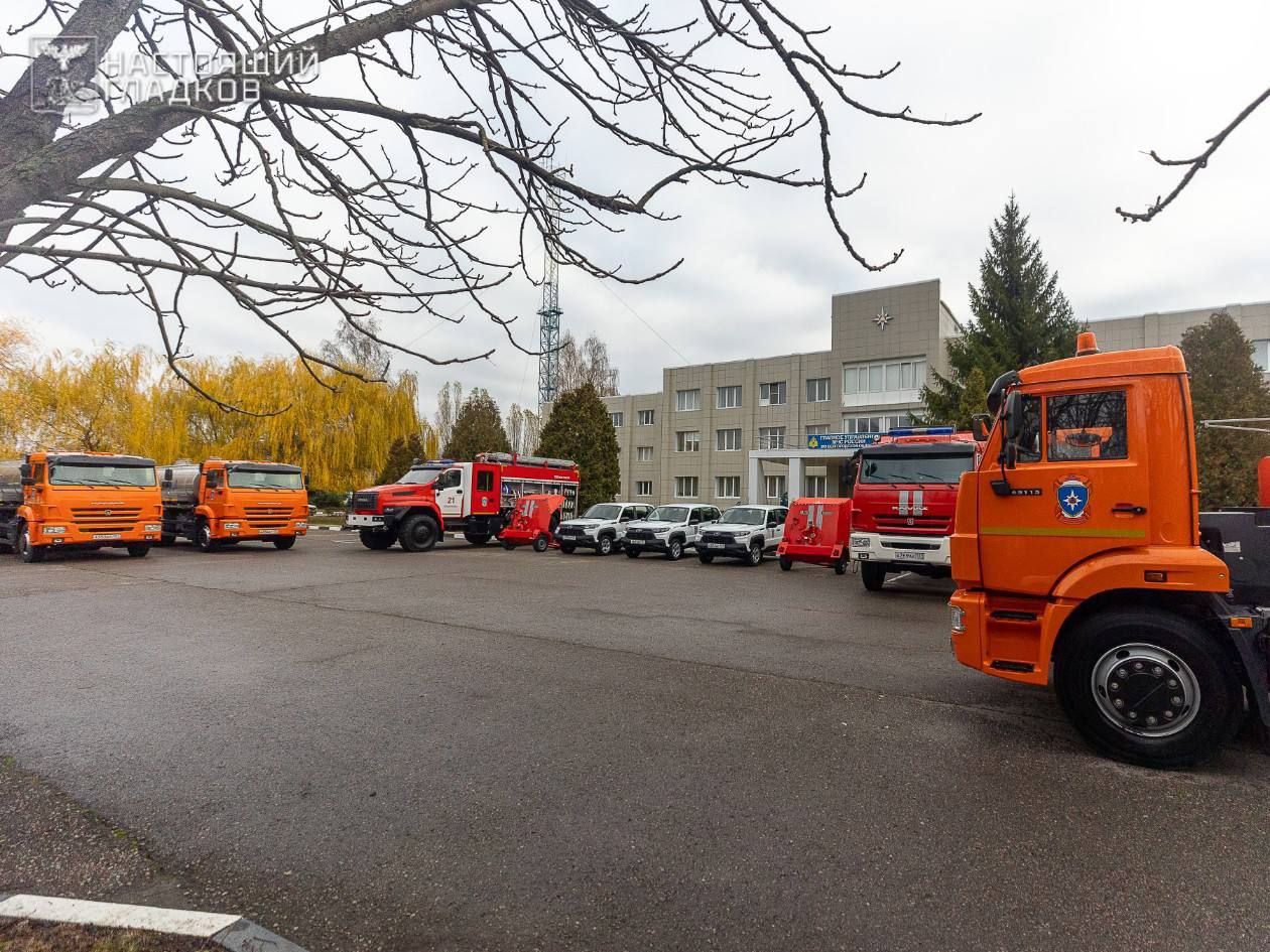 В автопарк поступили два пожарных автомобиля, две автоцистерны, два топливозаправщика и три служебных автомобиля. Также огнеборцам передалидва бронещита для защиты от осколков и высоких температур.