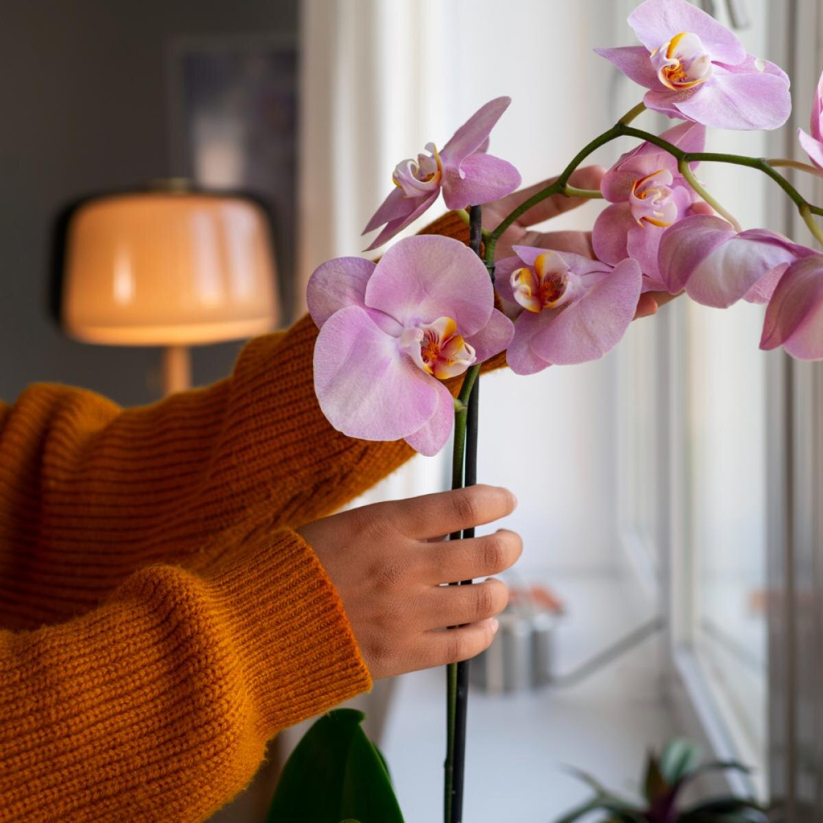 - Контраст температуры: Орхидеи отлично реагируют на перепады между дневной и ночной температурами. Идеальные условия — дневная температура от 18 до 25 °C с понижением до 16 °C ночью. Рекомендуется вынести цветок на балкон или разместить его рядом с окном на ночь.