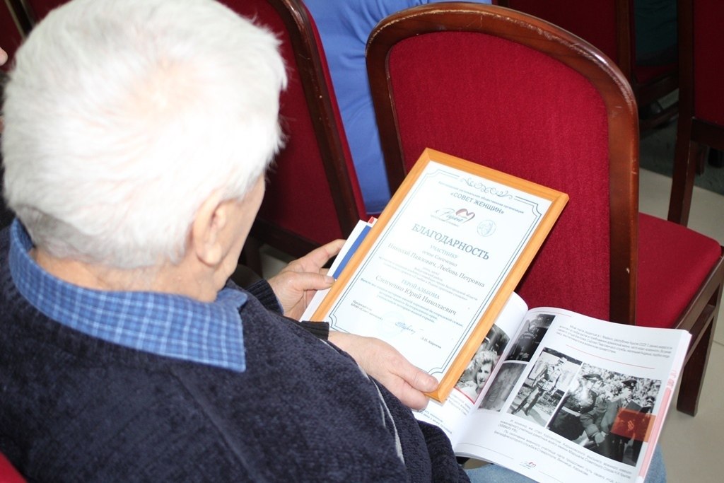 В начале мероприятия Анжелика Васильевна поздравила с юбилеем главу администрации Солонцинского сельского поселения Валентину Тарасову. Затем состоялось награждение участников проекта «О любви к Родине простыми словами», который реализовывался на территории Вейделевского муниципального округа в течение года. Его главной целью было патриотическое воспитание и объединение поколений. А итогом стало издание альбома о героях семей Белгородской области, куда вошли и наши земляки. Дипломами за участие в фотоконкурсе «Глаза моего героя», который проходил в рамках проекта, наградили семьи Генераленко и Силка. Кроме того, благодарности от Совета женщин за участие в создании альбома получили: Валентина Решетникова, Дарья Мелешкова, Валерия Силка, Юрий и Екатерина Генераленко, Нина Суслова, Ирина Левченко, а также Николай и Любовь Слепченко. Одним из центральных событий мероприятия стало вручение знаков отличия Женского клуба графини Софьи Владимировны Паниной его новым участницам.