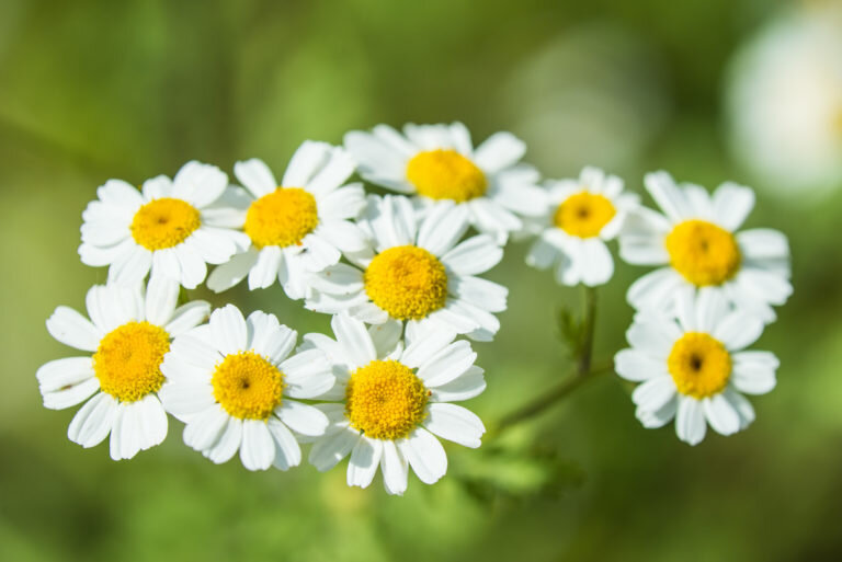 - Пиретрум девичий – кустистое растение с мелкими белыми цветками, чем-то напоминающее хризантемы своими формами и ароматом.