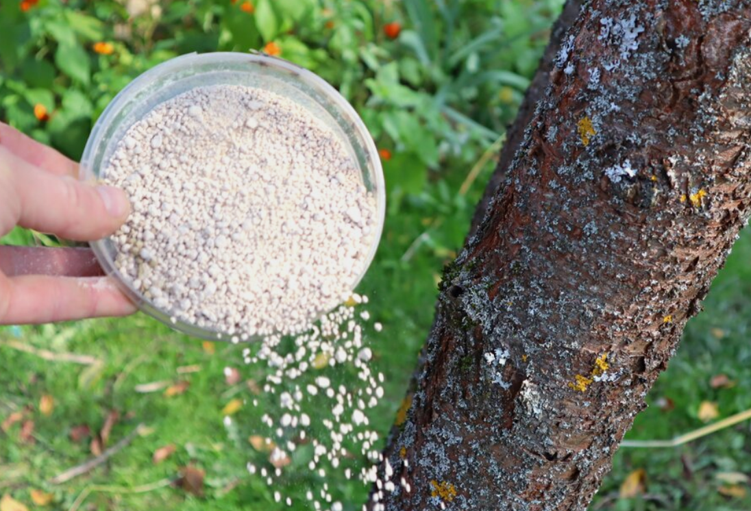 Оптимальная доза — три литровые банки золы для взрослых деревьев и одна банка для молодых. Золу нужно осторожно распылить вокруг ствола и слегка перемешать с верхним слоем почвы, затем обильно полить теплой водой, чтобы активизировать усвоение питательных веществ.