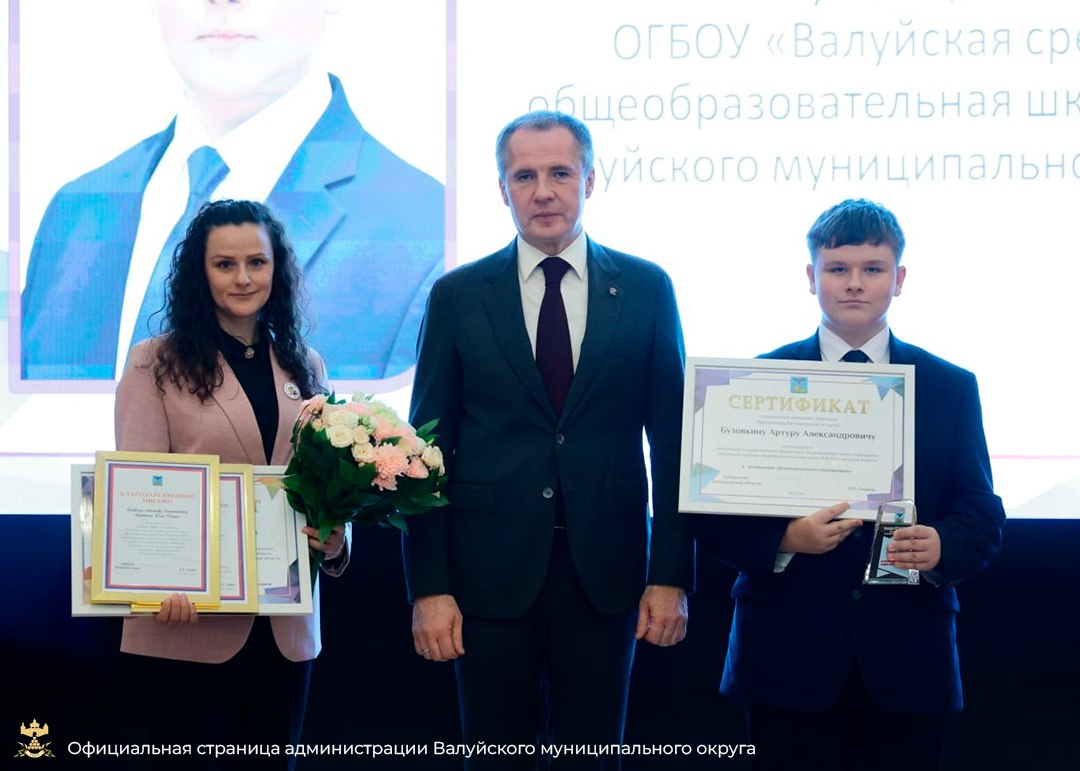 В номинации «Дополнительное образование» именной стипендией Губернатора области поощрён обучающийся Валуйской школы № 4 – Артур Бузовкин. За подготовку стипендиата Губернатора Белгородской области благодарственным письмом поощрена учитель Валуйской школы № 4 – Юлия Юрьевна Бузовкина.