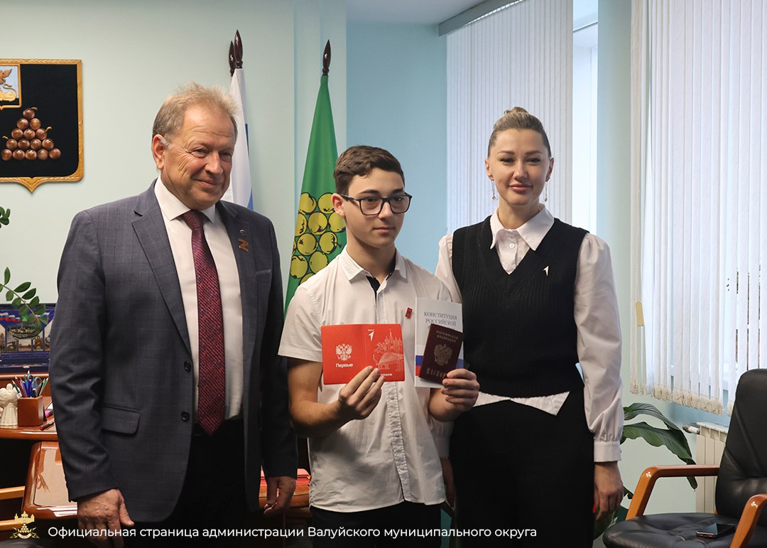 Личный документ ребятам вручил глава администрации Валуйского муниципального округа Алексей Дыбов.Получение паспорта – это значимый шаг и новая ступень в жизни каждого молодого человека. Этот документ не только подтверждает личность, но и символизирует начало новой ответственности и взрослой жизни.