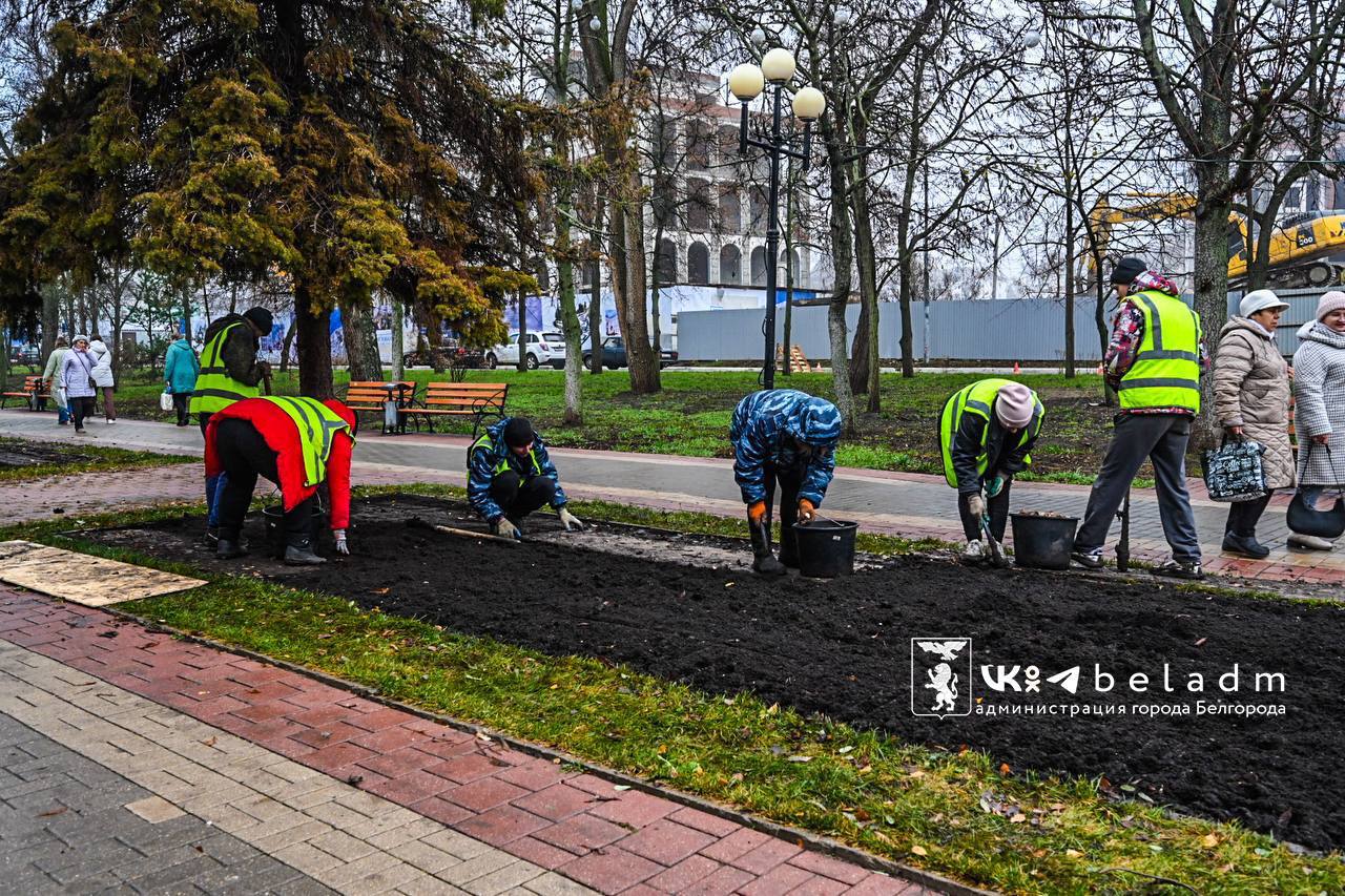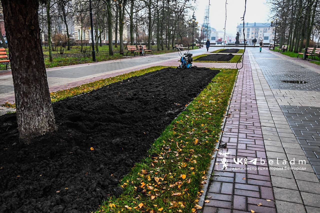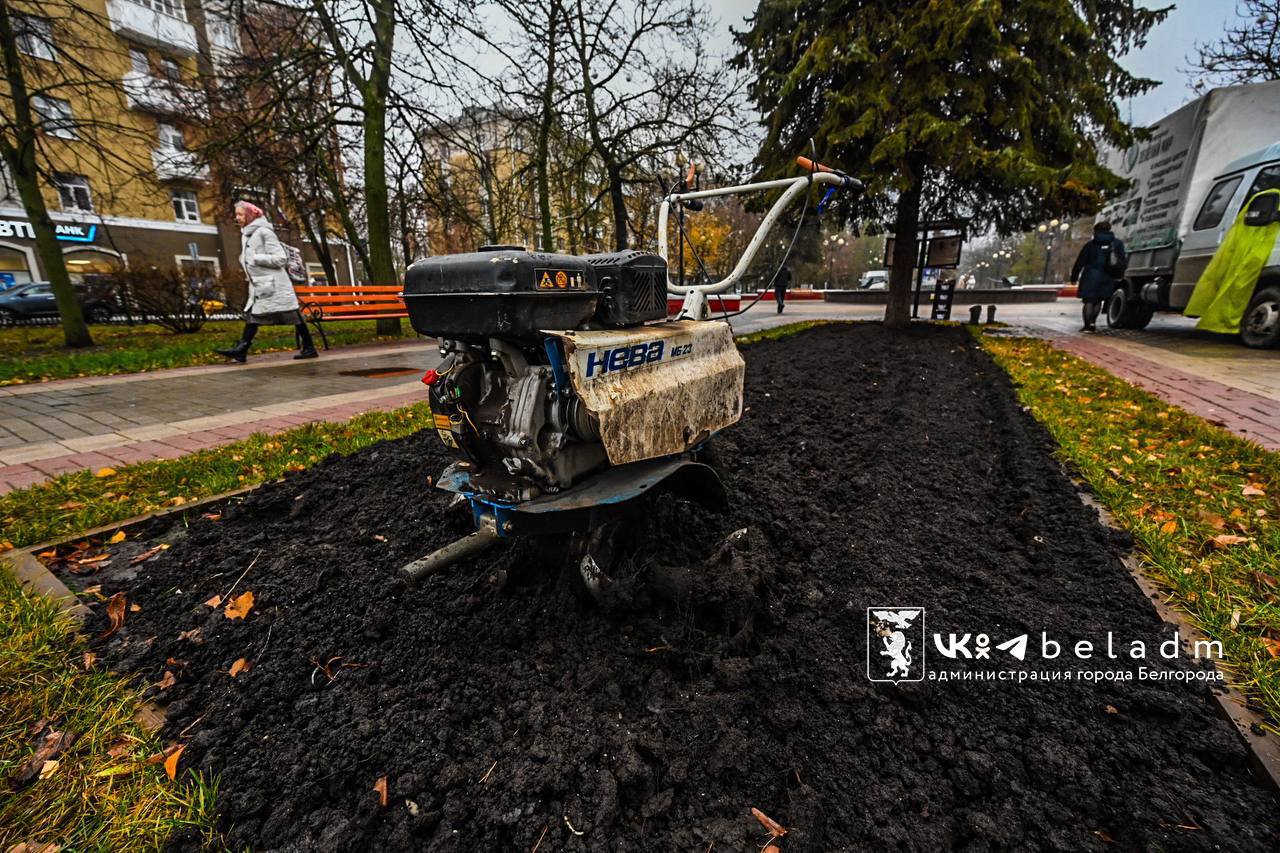 Клумбы тоже не остаются без внимания. Все теплолюбивые растения уже переехали в теплицы «Белгорблагоустройства», где пережидают холода. А в цветниках тем временем готовят почву, чтобы она лучше удерживала влагу и была готова к новому сезону. И высаживают тюльпаны, чтобы они весной радовали горожан ярким видом.