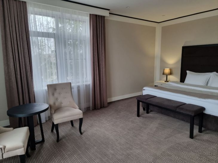 Даже в полдень в номере царит кромешная тьма, а утренний свет не просачивается ни единой щелью.
